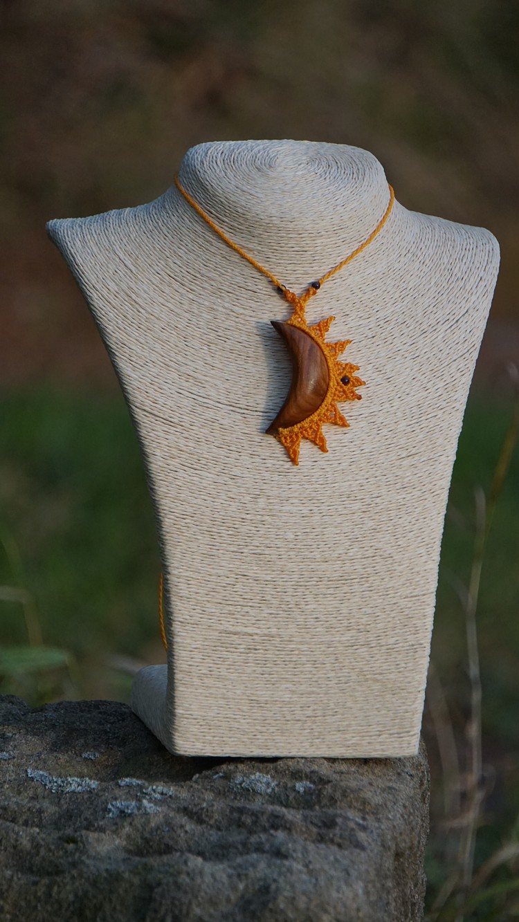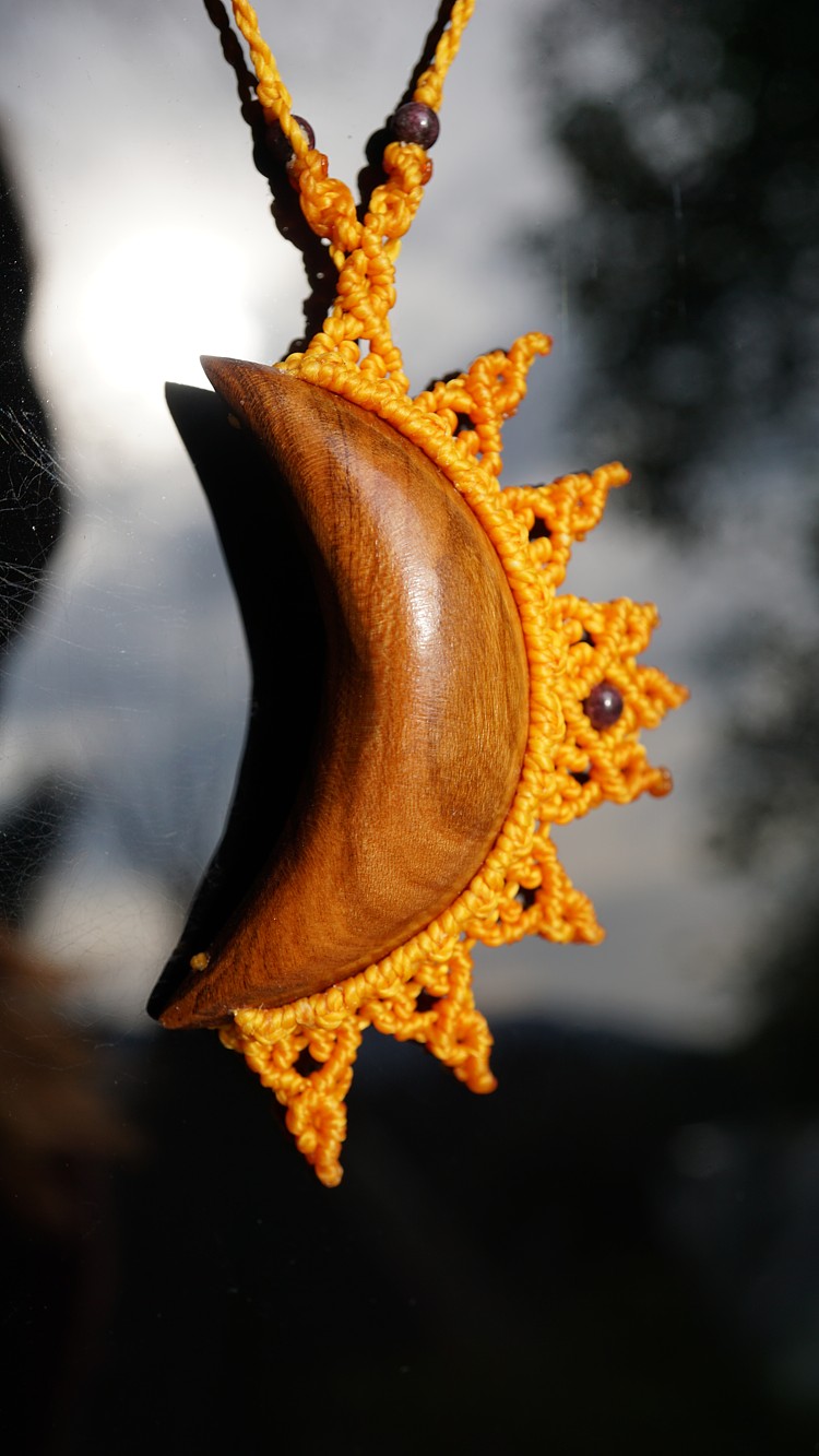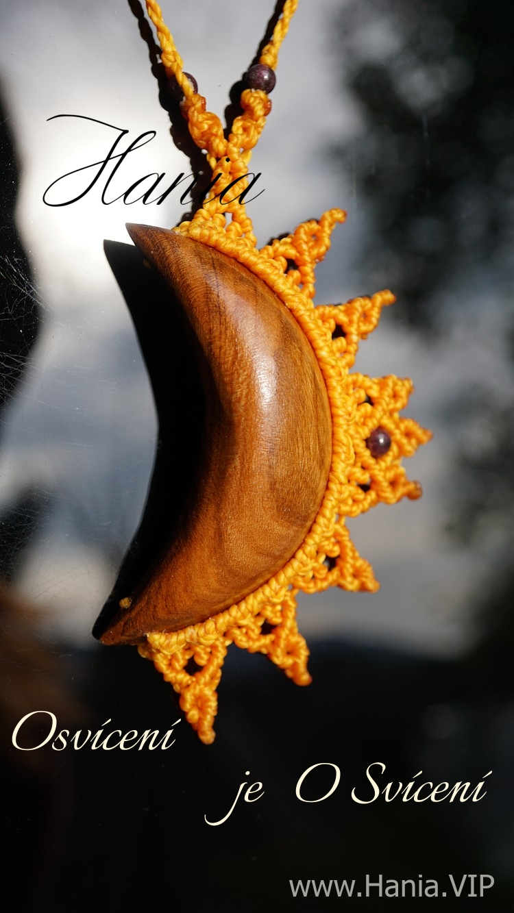 Dřevo uprostřed šperku je třešňové z podhůří Orlických hor. Indiáni věří, že každý strom je jako anténa napojená na jednu z planet. Třešeň je napojena na Lunu, je tedy velmi důležitá pro ženy, jejich cykličnost a proměnlivost. Je v ní velmi jemná a něžná, přesto mocná energie.