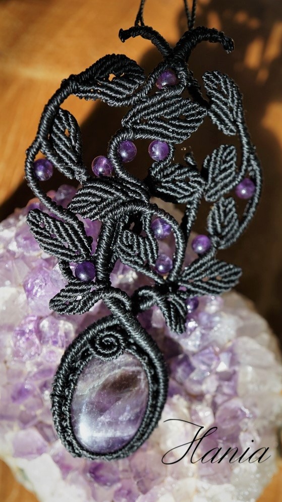 Šperk vznikl technikou micro macramé, což je uzlíkování pouze za pomoci šikovných prstů a fantasie. Používám brazilské povoskované šňůrky, které jsou jedny z nejkvalitnějších na světě pro svou pevnost a stálobarevnost. Šňůrky je možné ručně vyprat ve vlažné mýdlové lázni, vysušit v ručníku a nechat volně uschnout.