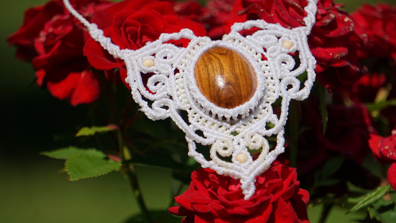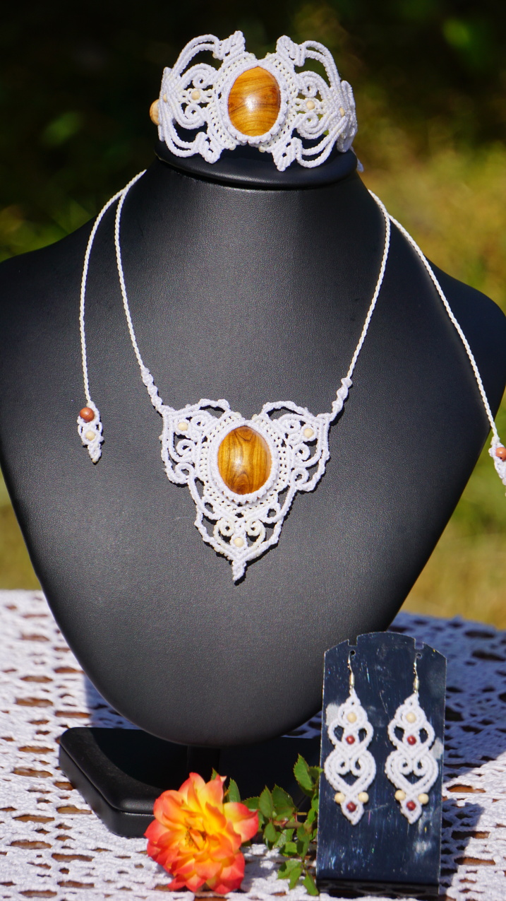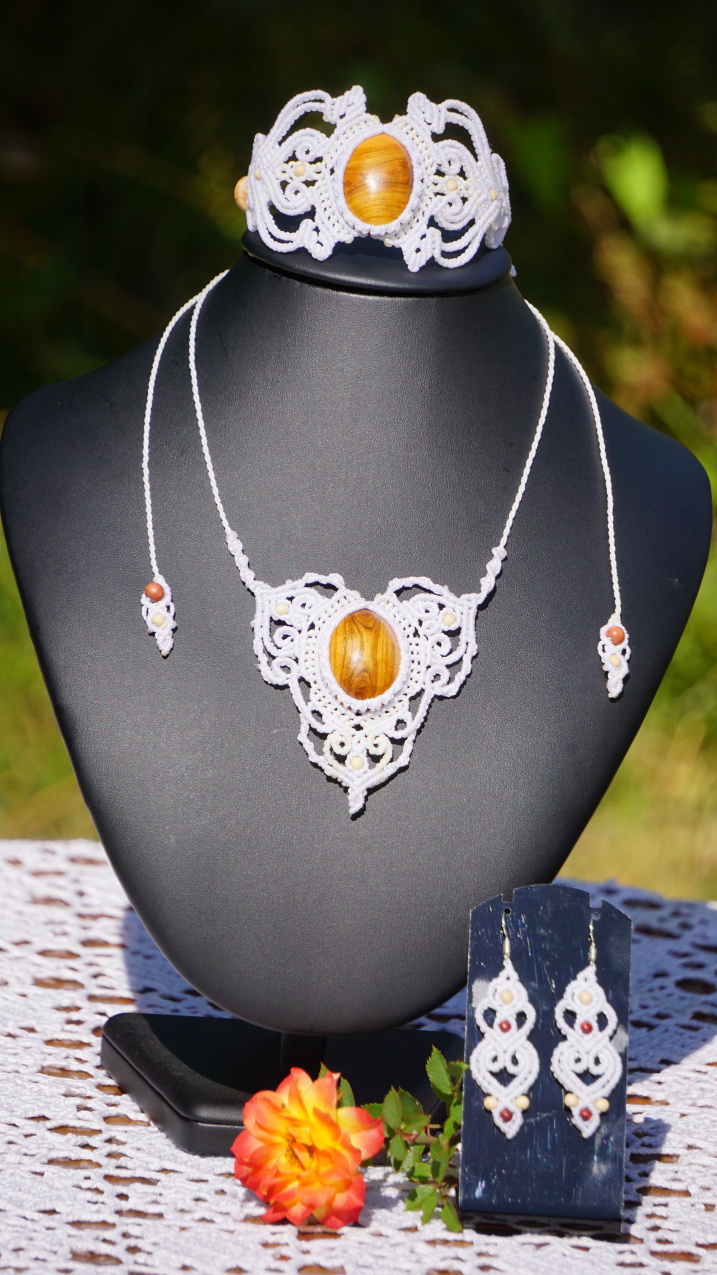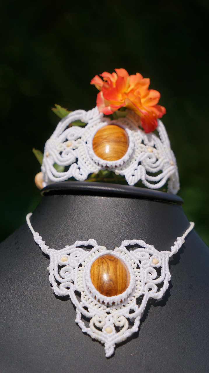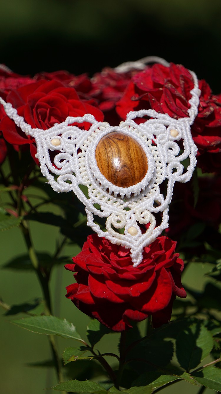 Šperk vznikl technikou micro macramé, což je uzlíkování pouze za pomoci šikovných prstů a fantasie. Používám brazilské povoskované šňůrky, které jsou jedny z nejkvalitnějších na světě pro svou pevnost a stálobarevnost. Šňůrky je možné ručně vyprat ve vlažné mýdlové lázni, vysušit v ručníku a nechat volně uschnout.