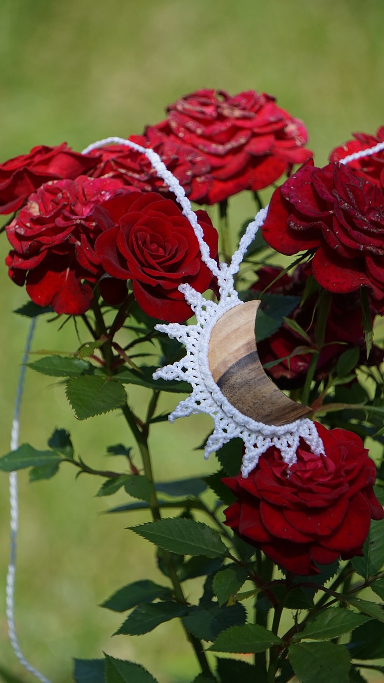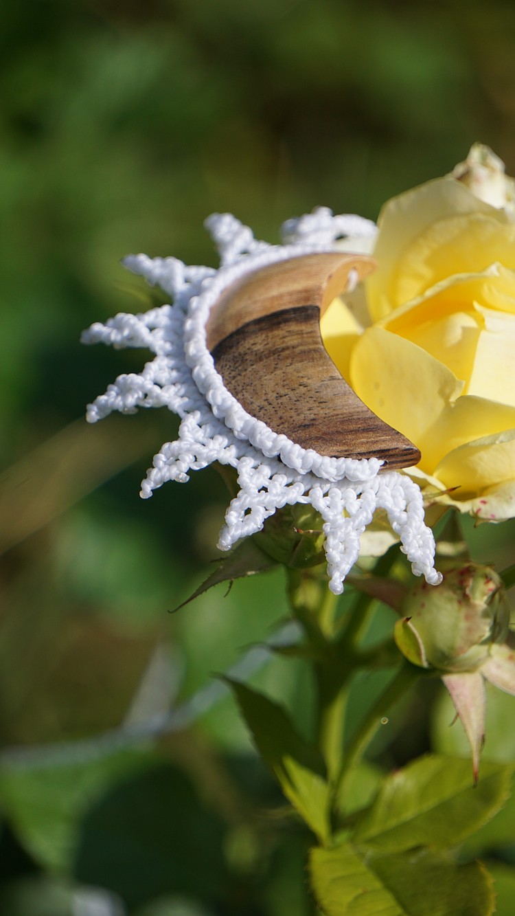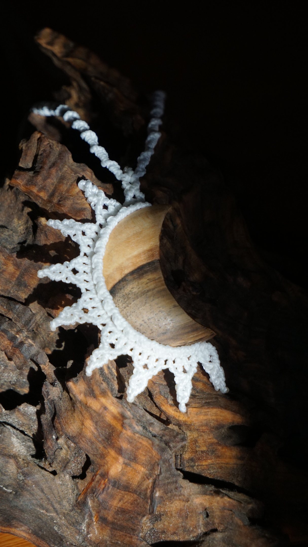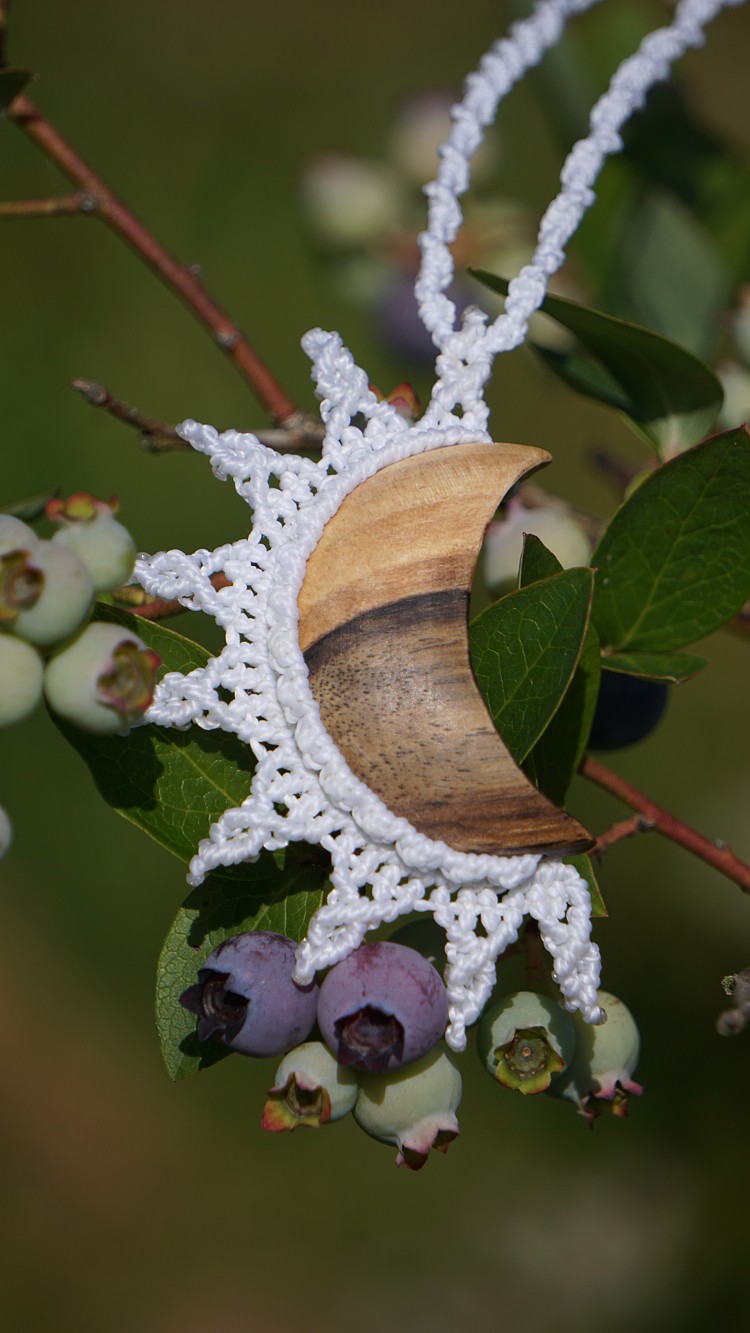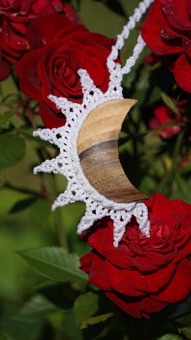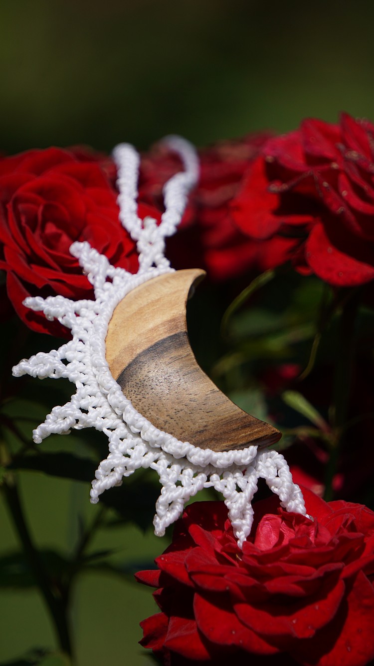 Šperk vznikl technikou micro macramé, což je uzlíkování pouze za pomoci šikovných prstů a fantasie. Používám brazilské povoskované šňůrky, které jsou jedny z nejkvalitnějších na světě pro svou pevnost a stálobarevnost. Šňůrky je možné ručně vyprat ve vlažné mýdlové lázni, vysušit v ručníku a nechat volně uschnout.