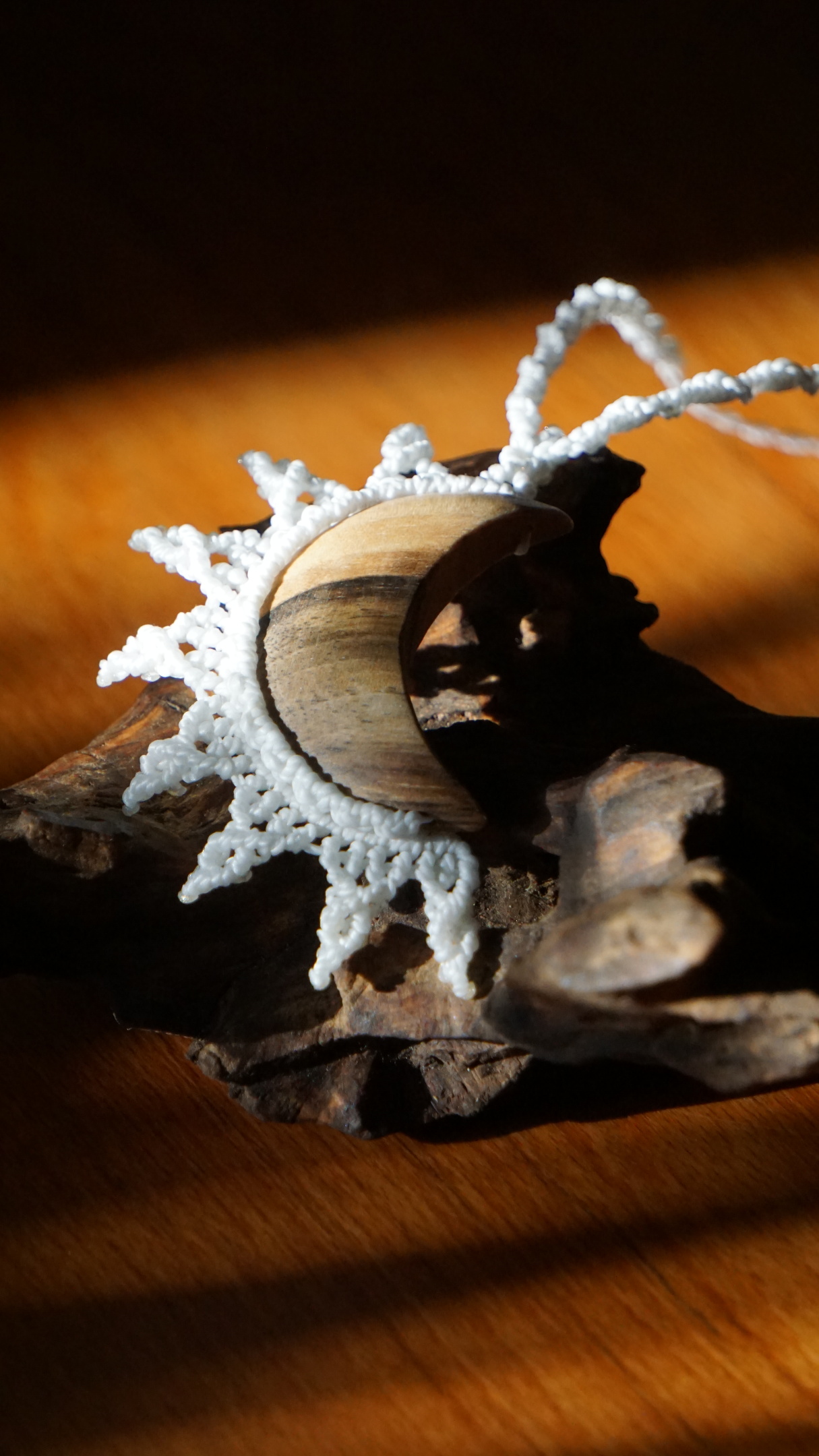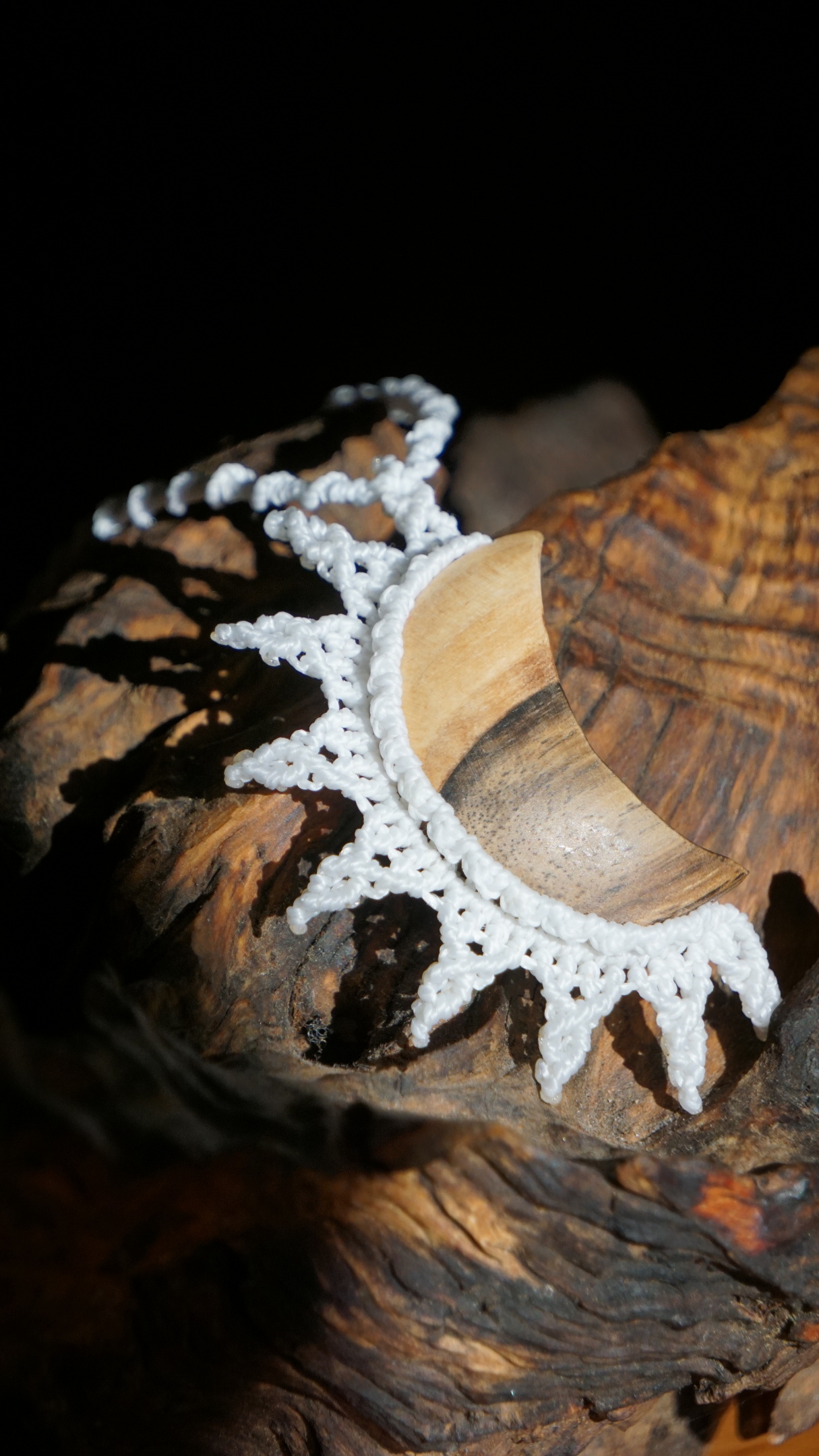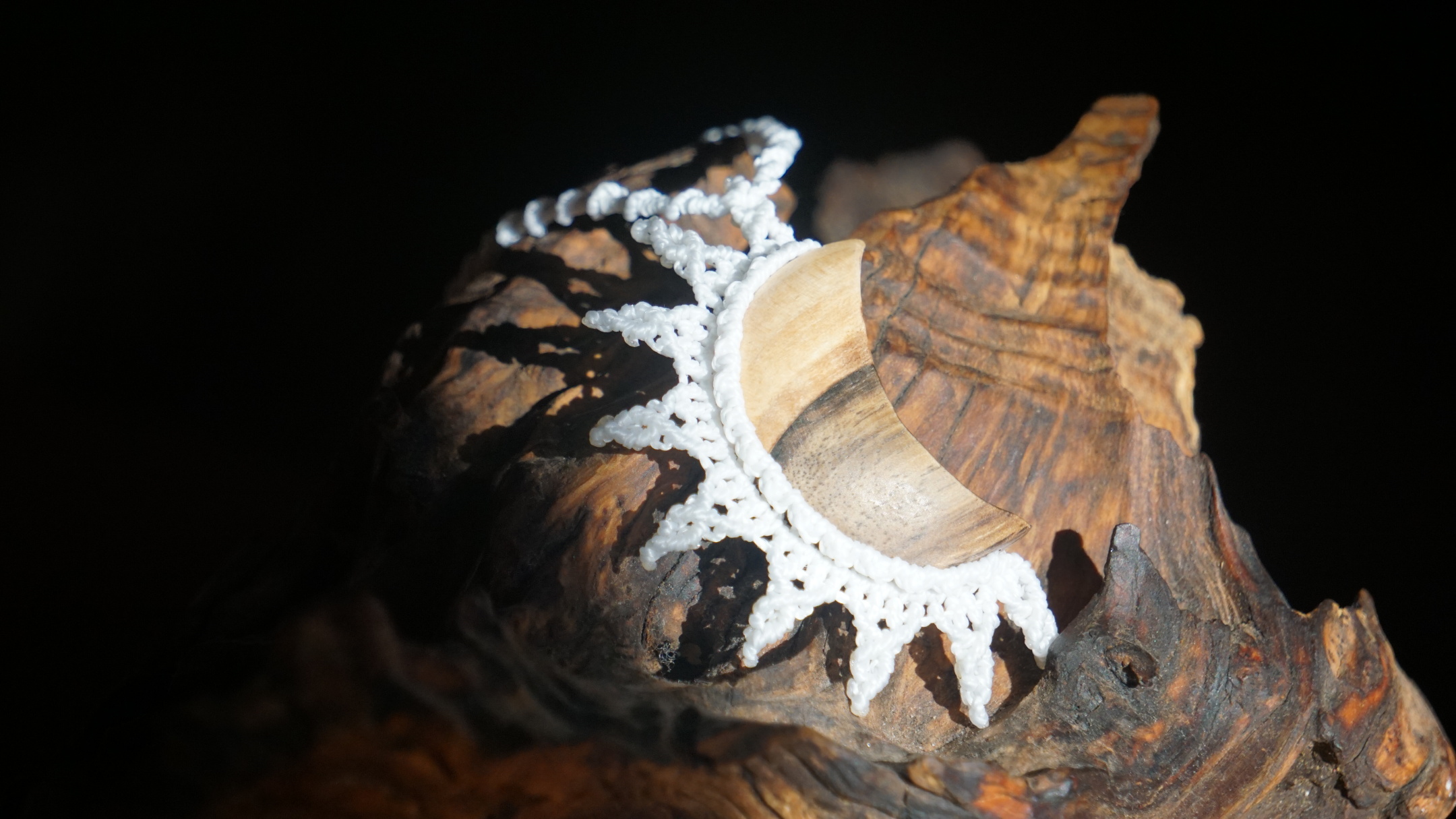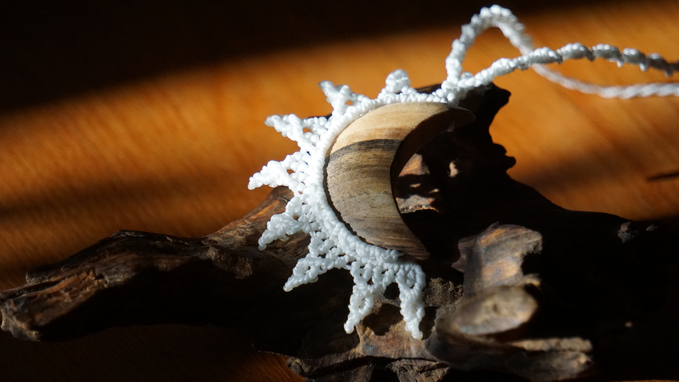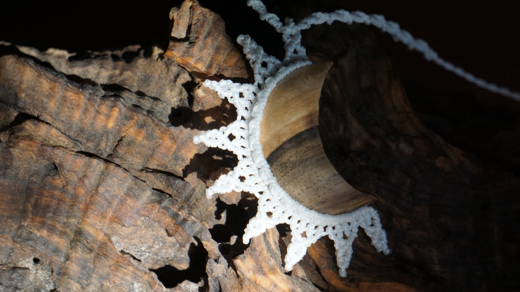 Šperk vznikl technikou micro macramé, což je uzlíkování pouze za pomoci šikovných prstů a fantasie. Používám brazilské povoskované šňůrky, které jsou jedny z nejkvalitnějších na světě pro svou pevnost a stálobarevnost. Šňůrky je možné ručně vyprat ve vlažné mýdlové lázni, vysušit v ručníku a nechat volně uschnout.