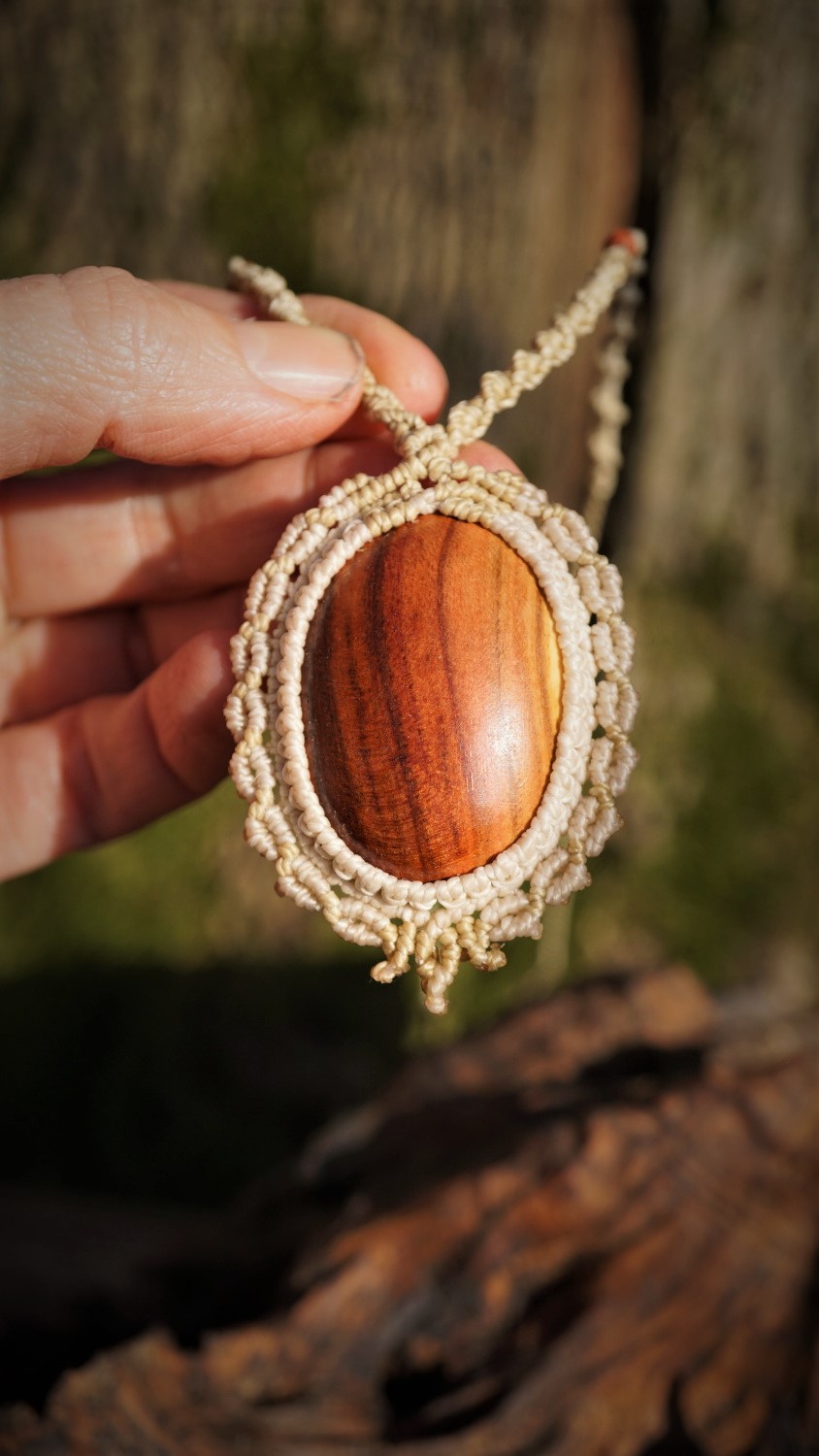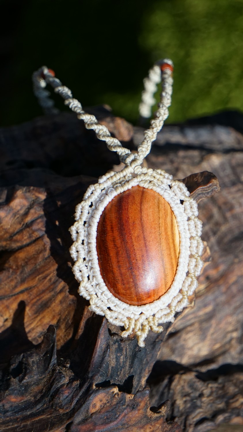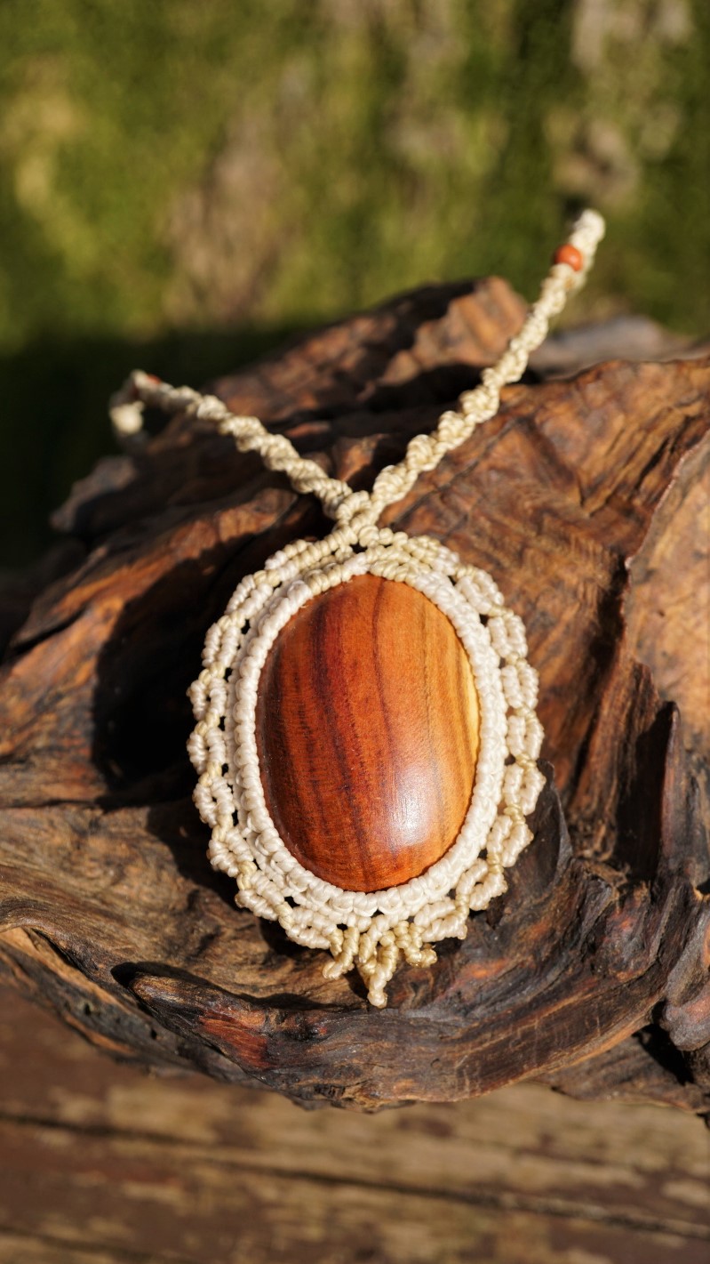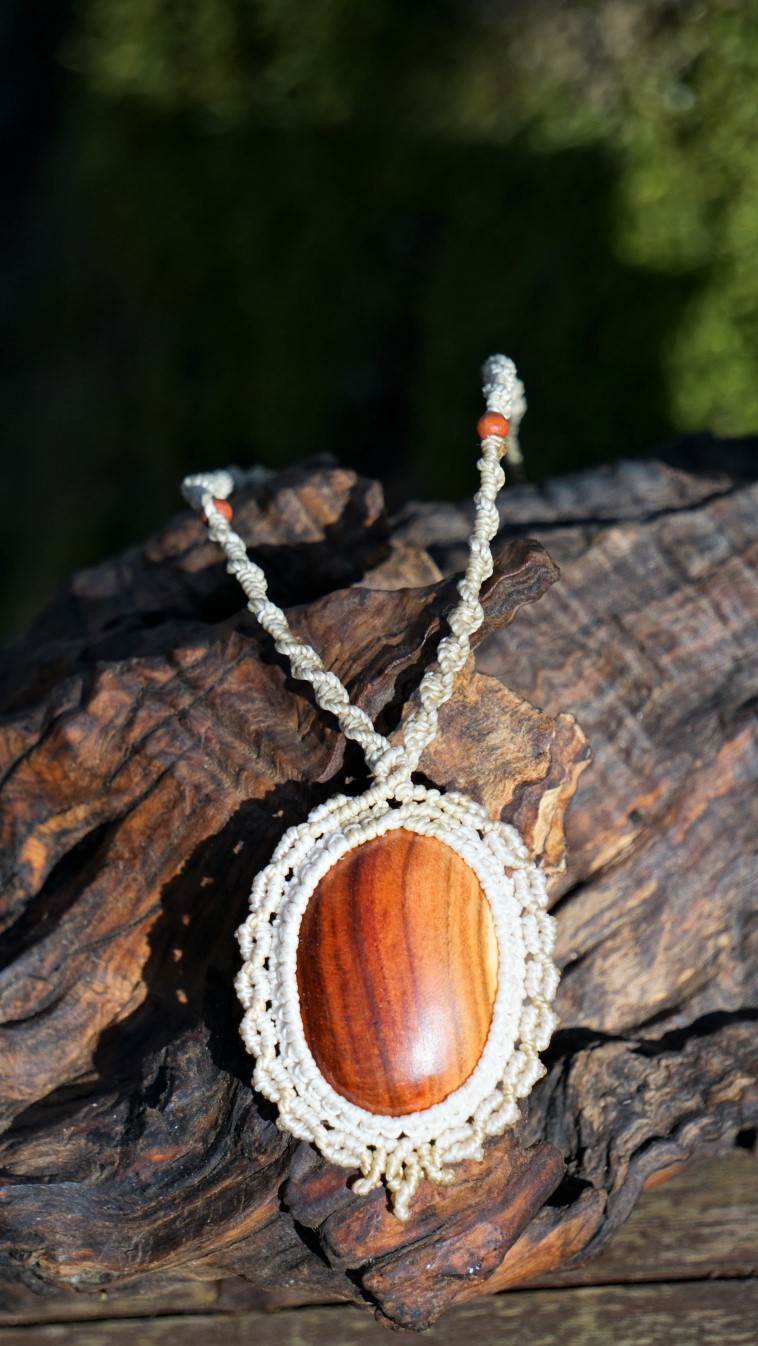 Dřevo uprostřed je ručně vyráběno v domácí dílně od kmene, vybrušováno, ošetřeno směsí olejů a vosků. Výhodou dřeva je absorbování vonných olejů. Pokud si na spodní stranu šperku kápnete esenciální olej s vaší osobní vůní, proměníte svůj šperk v nositele příjemného aroma nejen pro vás, ale i pro vaše okolí ve velmi jemné a přitažlivé podobě. Stačí 1 kapka za den :-). Centimetrová kostička dřeva má totiž v sobě v podobě cestiček a průduchů plochu o velikosti fotbalového stadionu. Vaše kůže olej zahřívá a proto je esence voňavá velmi dlouho.