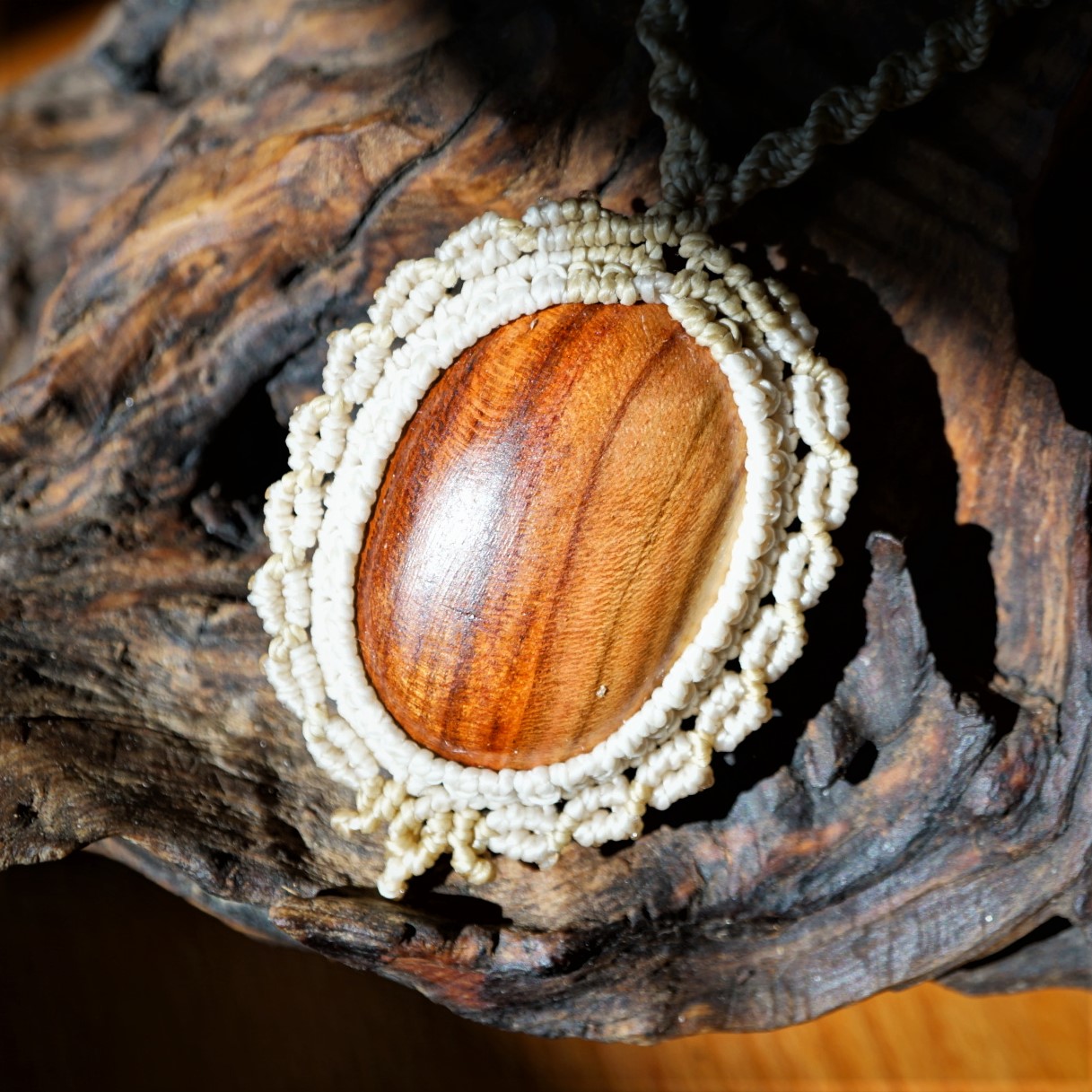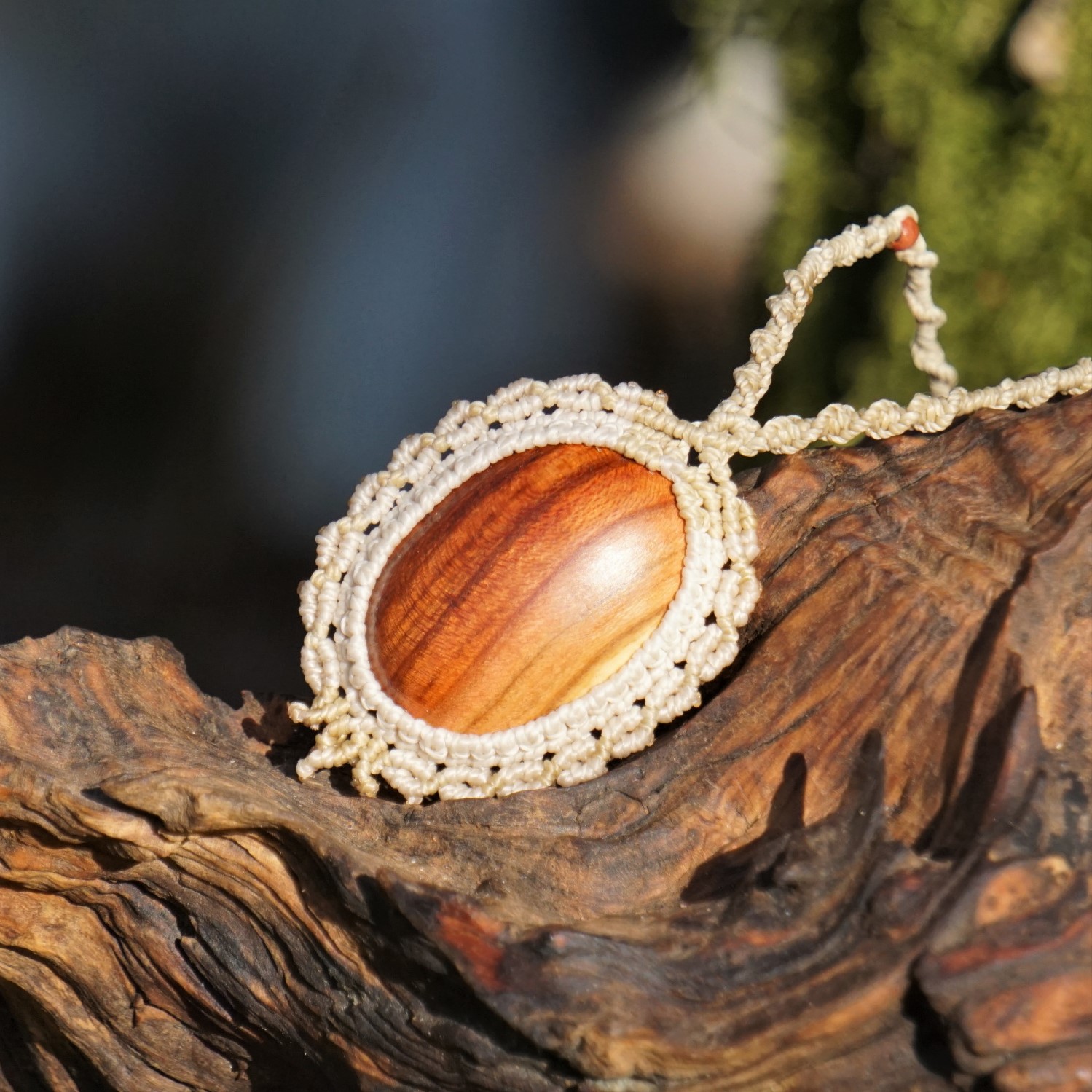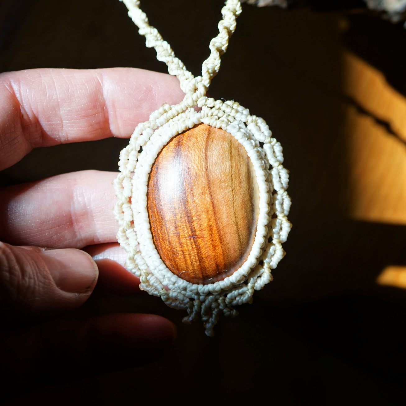 Dřevo uprostřed je ručně vyráběno v domácí dílně od kmene, vybrušováno, ošetřeno směsí olejů a vosků. Výhodou dřeva je absorbování vonných olejů. Pokud si na spodní stranu šperku kápnete esenciální olej s vaší osobní vůní, proměníte svůj šperk v nositele příjemného aroma nejen pro vás, ale i pro vaše okolí ve velmi jemné a přitažlivé podobě. Stačí 1 kapka za den :-). Centimetrová kostička dřeva má totiž v sobě v podobě cestiček a průduchů plochu o velikosti fotbalového stadionu. Vaše kůže olej zahřívá a proto je esence voňavá velmi dlouho.