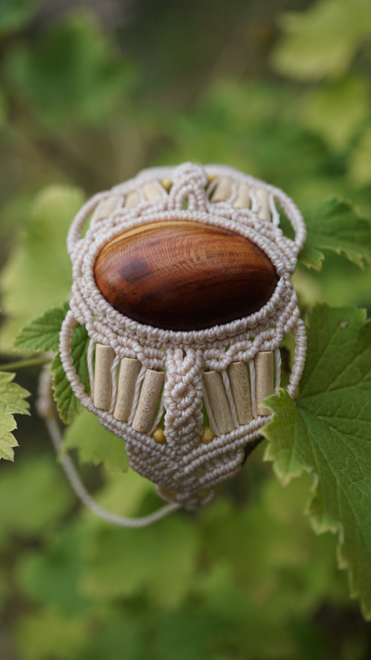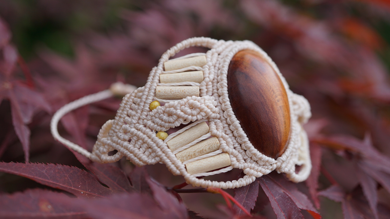 Šperk vznikl technikou micro macramé, což je uzlíkování pouze za pomoci šikovných prstů a fantazie. Používám brazilské povoskované šňůrky, které jsou jedny z nejkvalitnějších na světě pro svou pevnost a stálobarevnost.