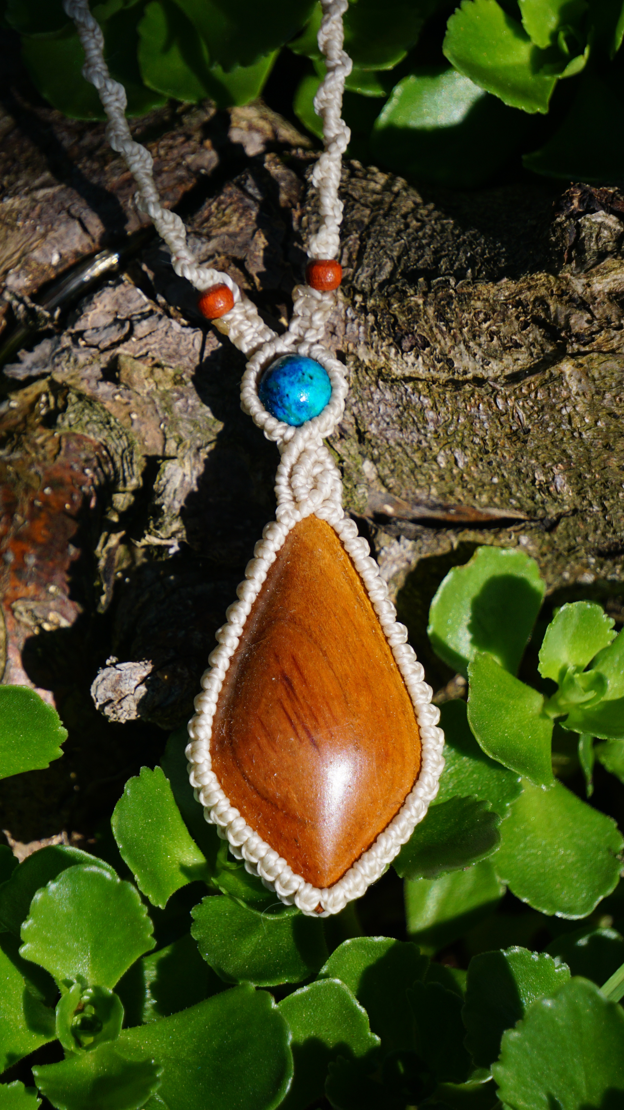 Šperk vznikl technikou micro macramé, což je uzlíkování pouze za pomoci šikovných prstů a fantasie. Používám brazilské povoskované šňůrky, které jsou jedny z nejkvalitnějších na světě pro svou pevnost a stálobarevnost. Šňůrky je možné ručně vyprat ve vlažné mýdlové lázni, vysušit v ručníku a nechat volně uschnout.