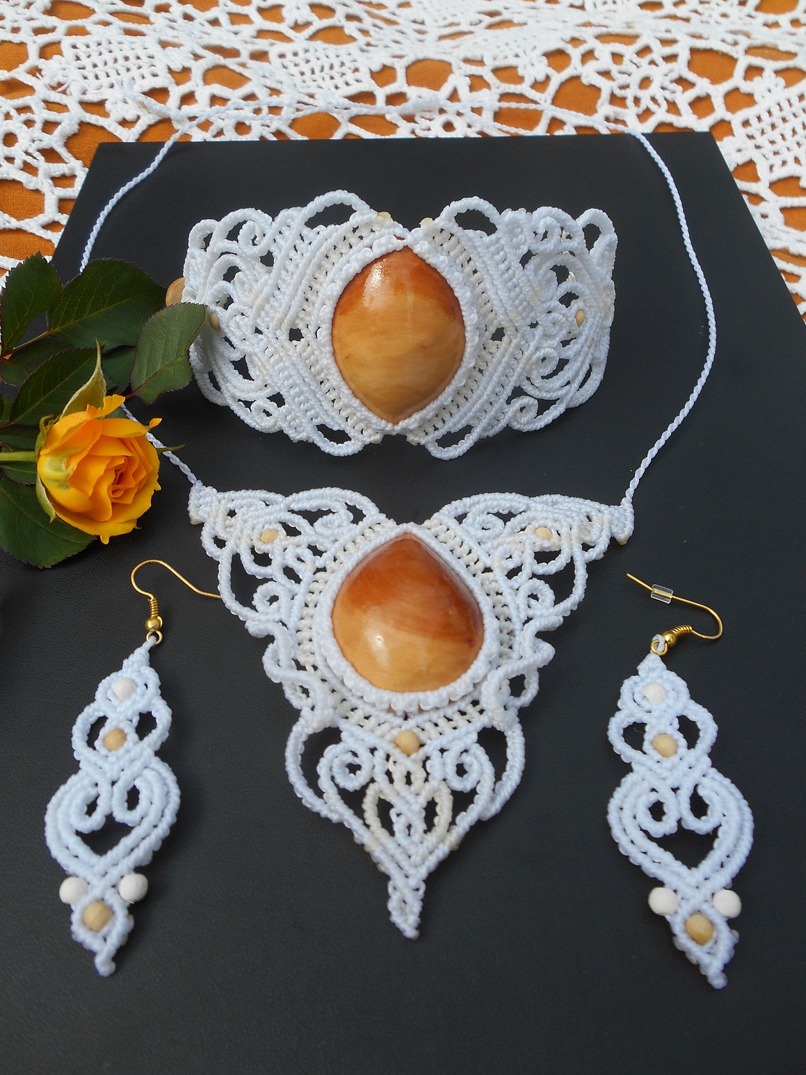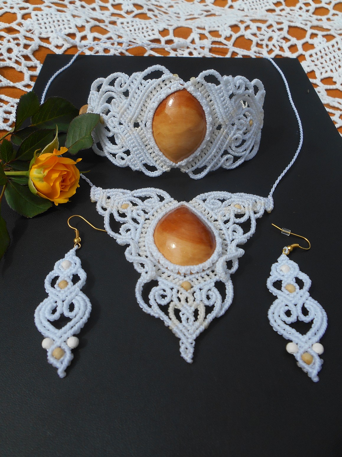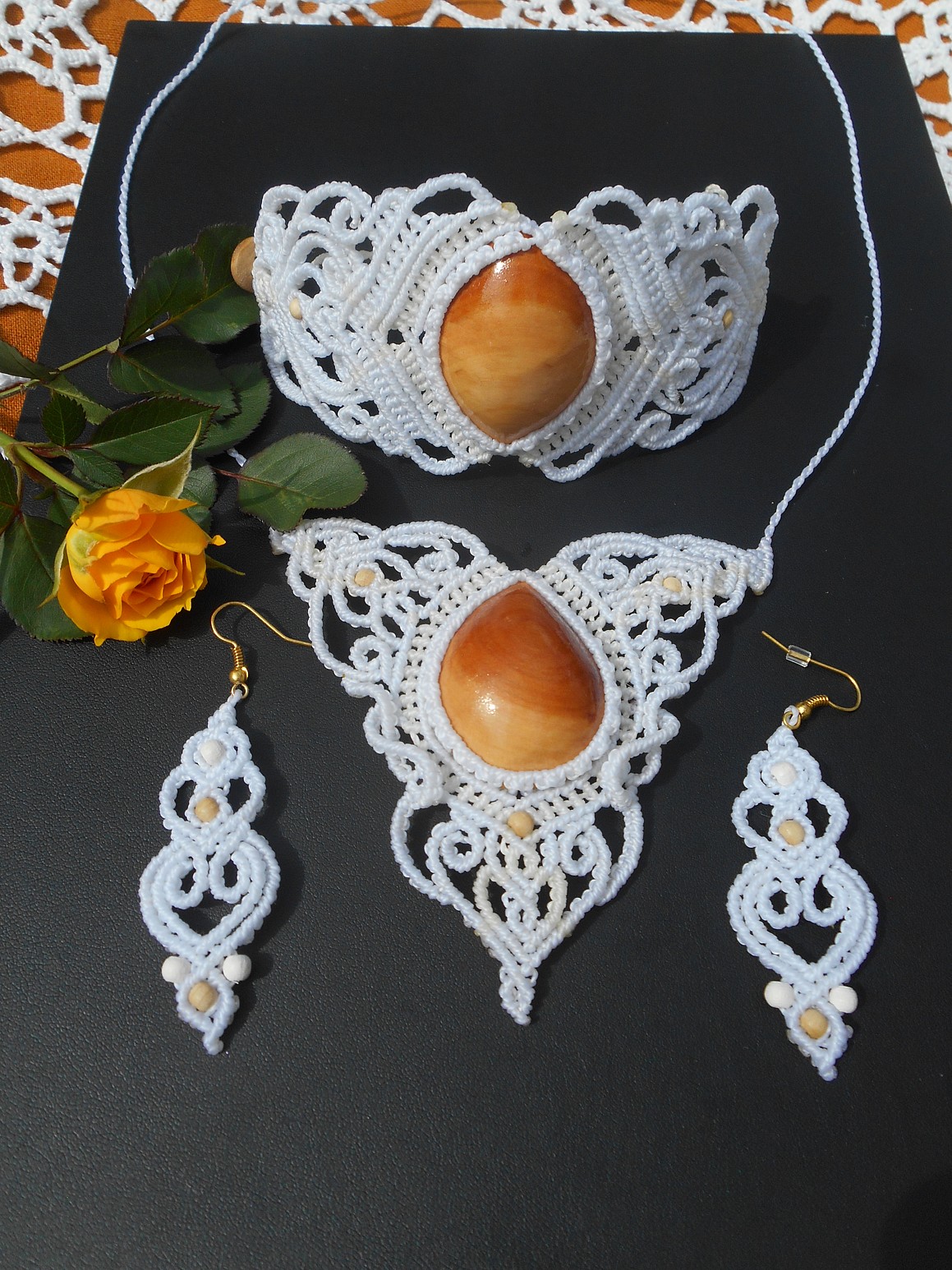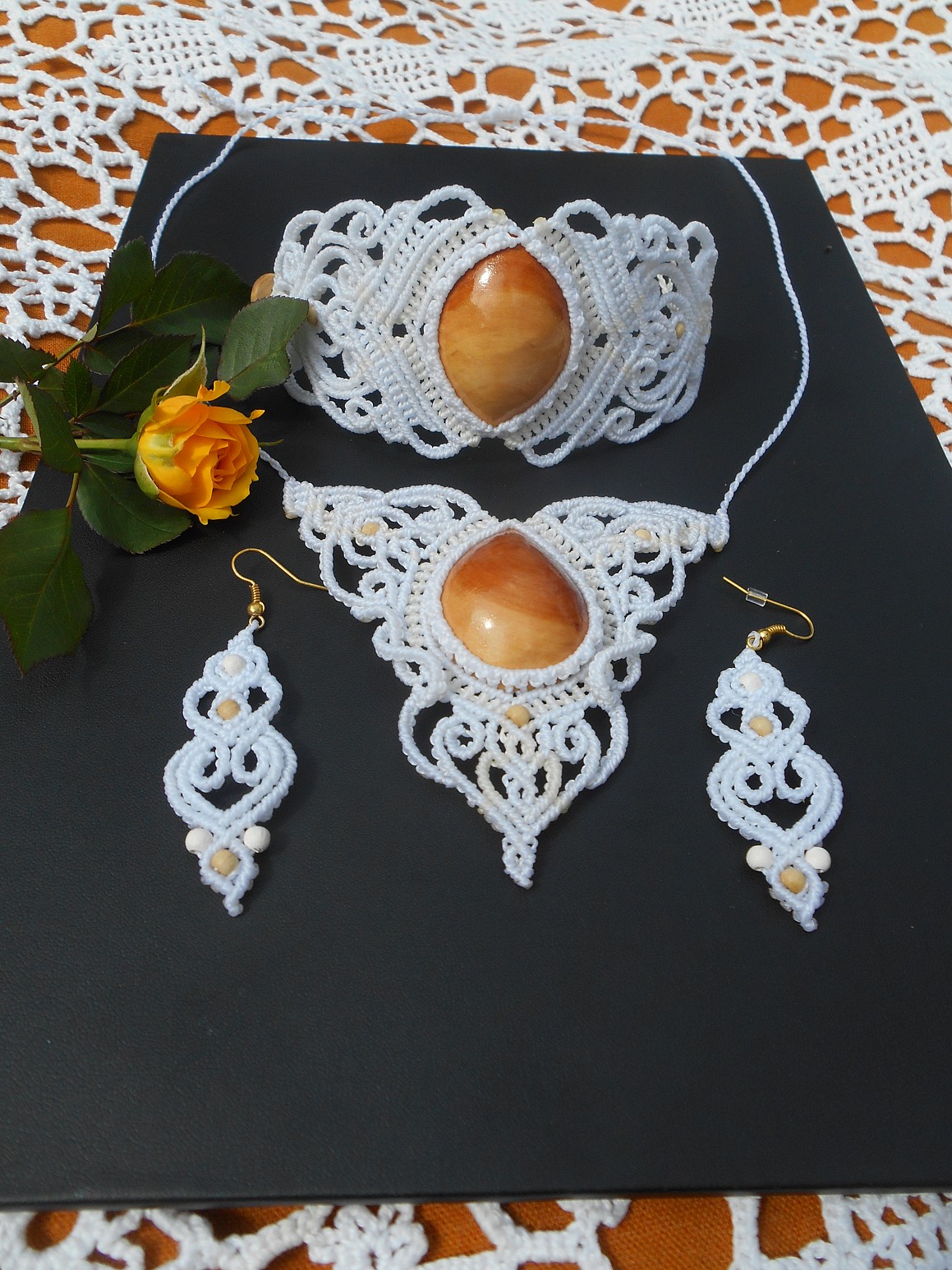Šperky vznikly technikou micro macramé, což uzlíkování pouze za pomoci šikovných prstů a fantasie. Používám brazilské povoskované šňůrky, které jsou jedny z nejkvalitnějších na světě pro svou pevnost a stálobarevnost.