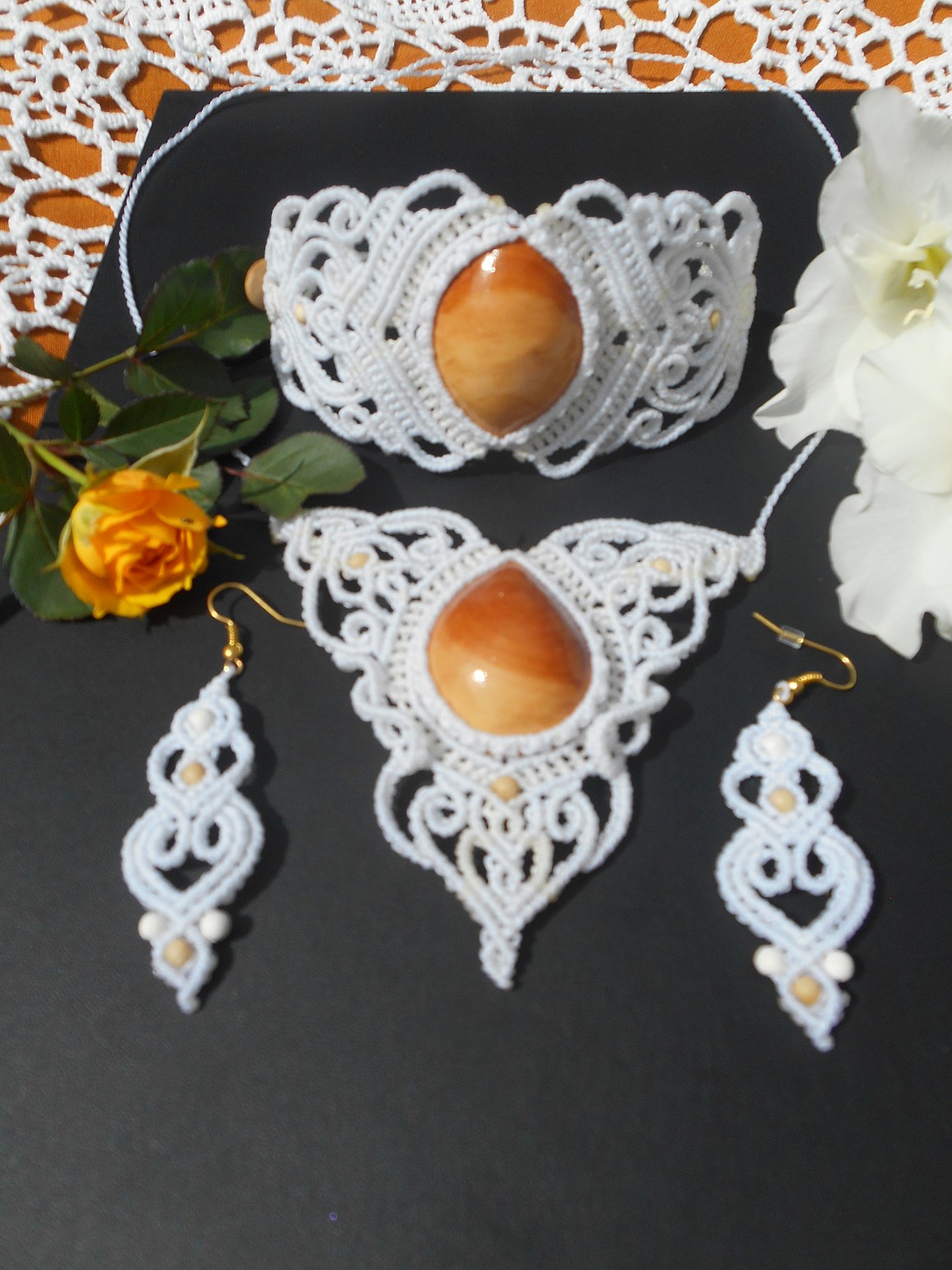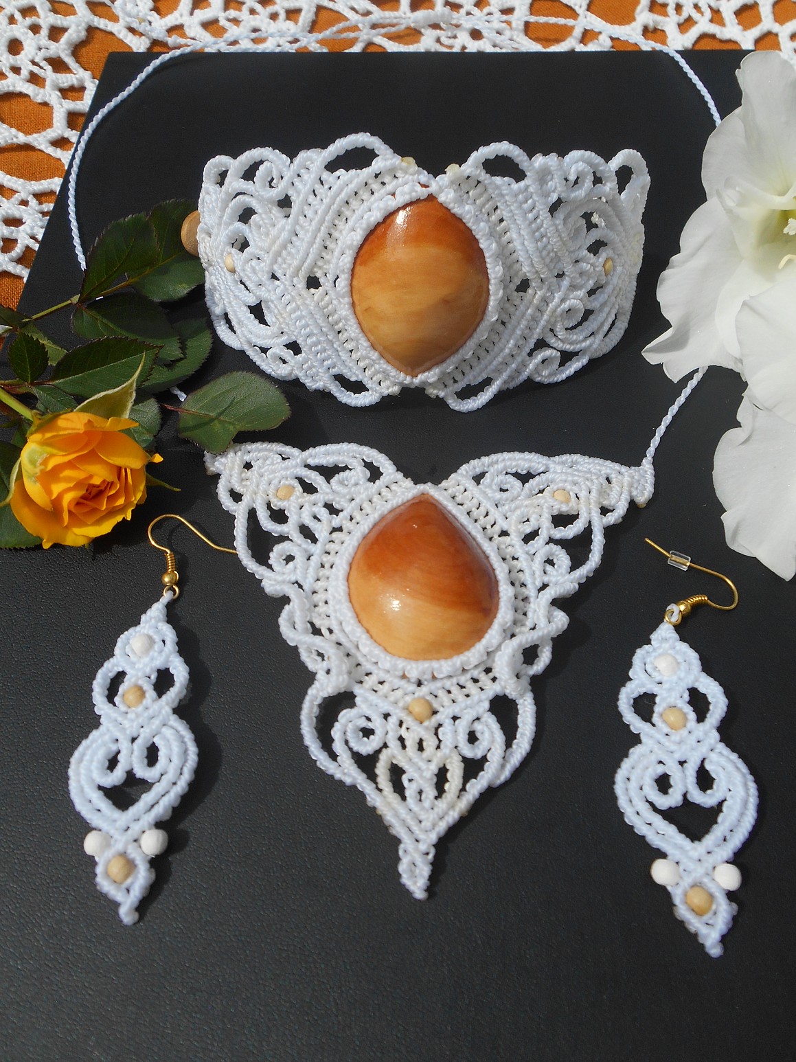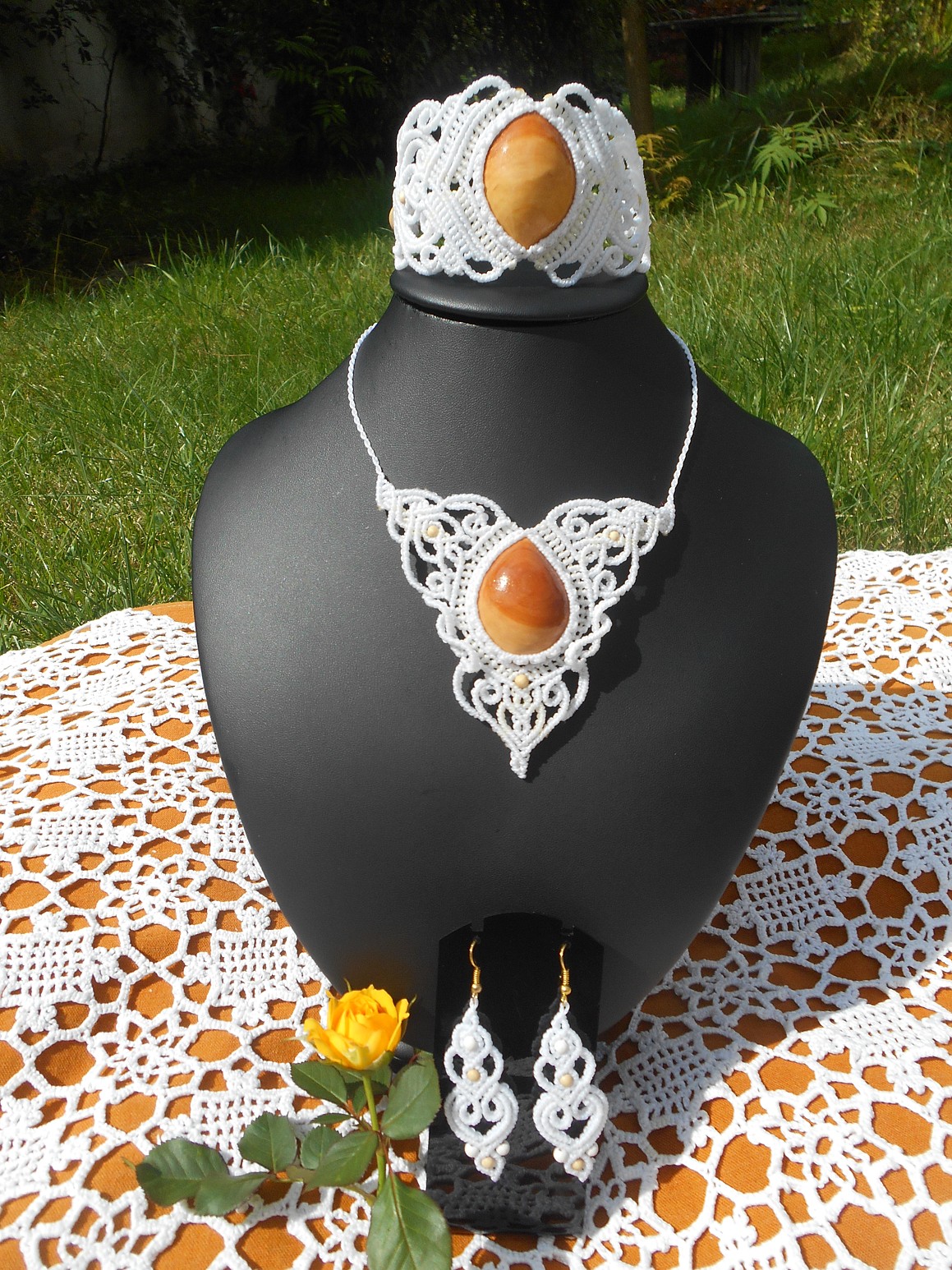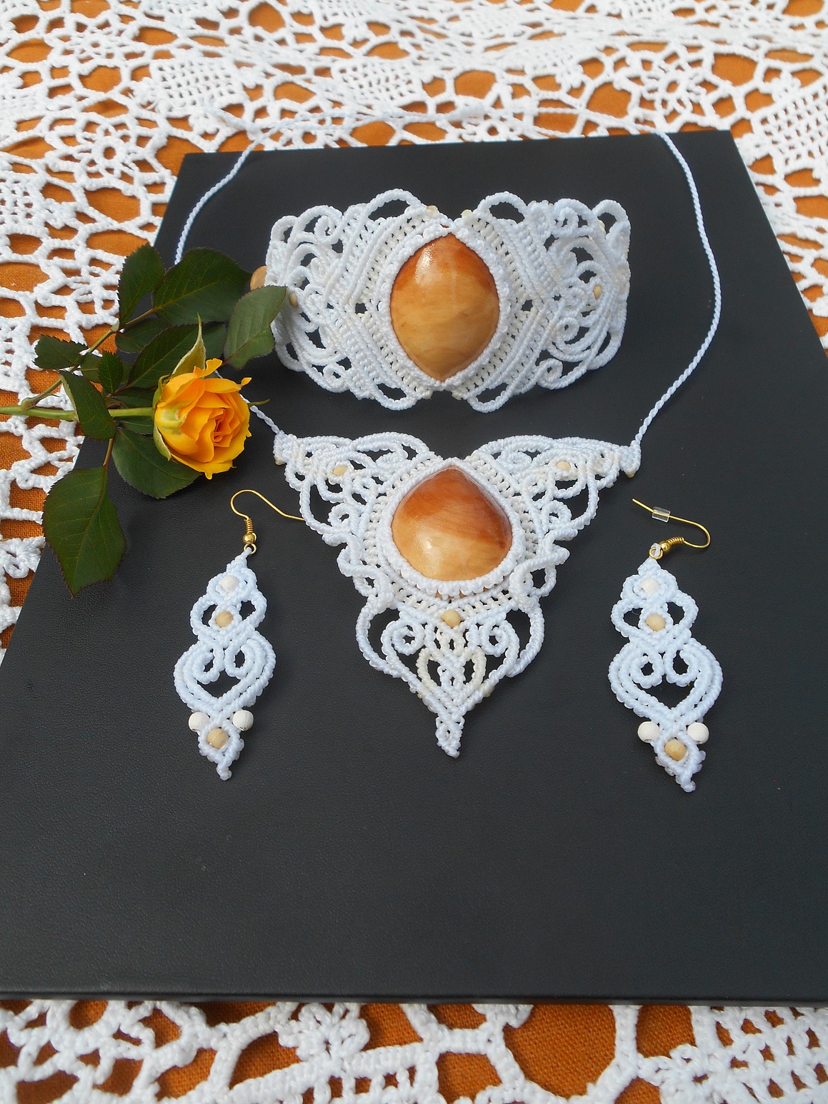Šperky vznikly technikou micro macramé, což uzlíkování pouze za pomoci šikovných prstů a fantasie. Používám brazilské povoskované šňůrky, které jsou jedny z nejkvalitnějších na světě pro svou pevnost a stálobarevnost.