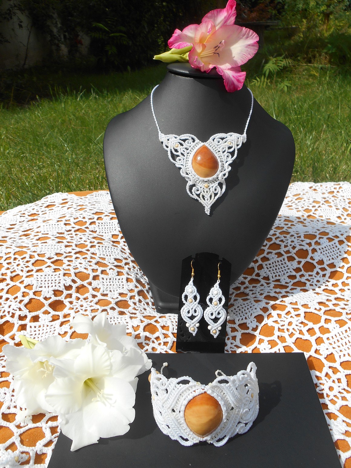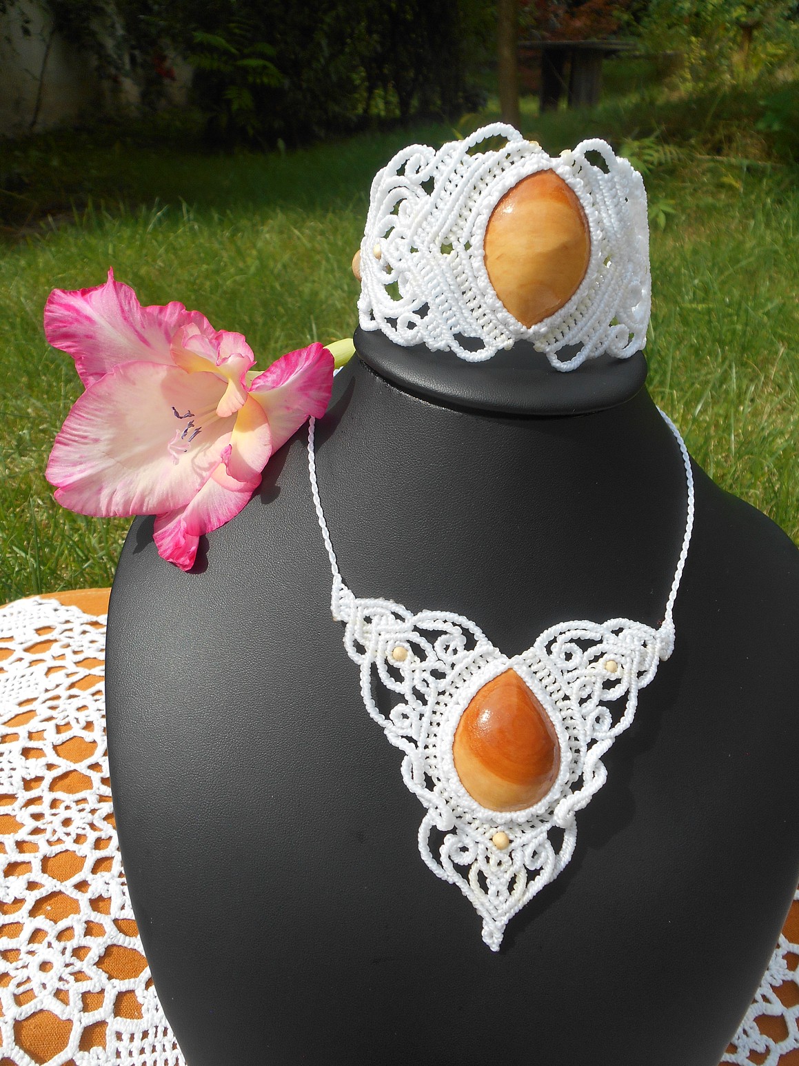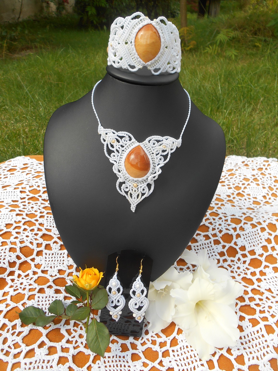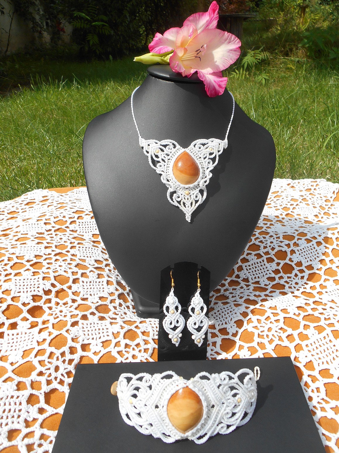 Šperky vznikly technikou micro macramé, což uzlíkování pouze za pomoci šikovných prstů a fantasie. Používám brazilské povoskované šňůrky, které jsou jedny z nejkvalitnějších na světě pro svou pevnost a stálobarevnost.