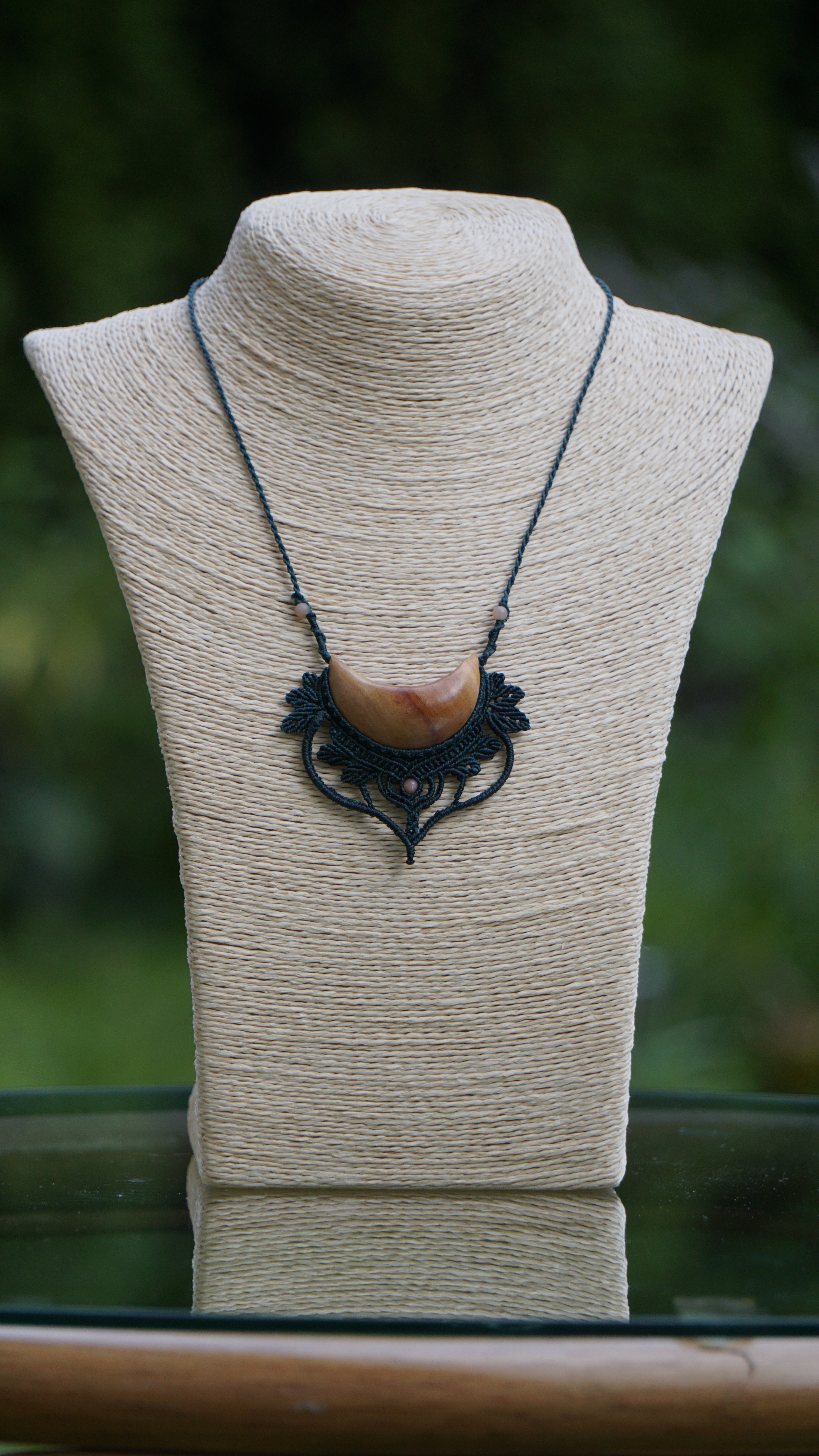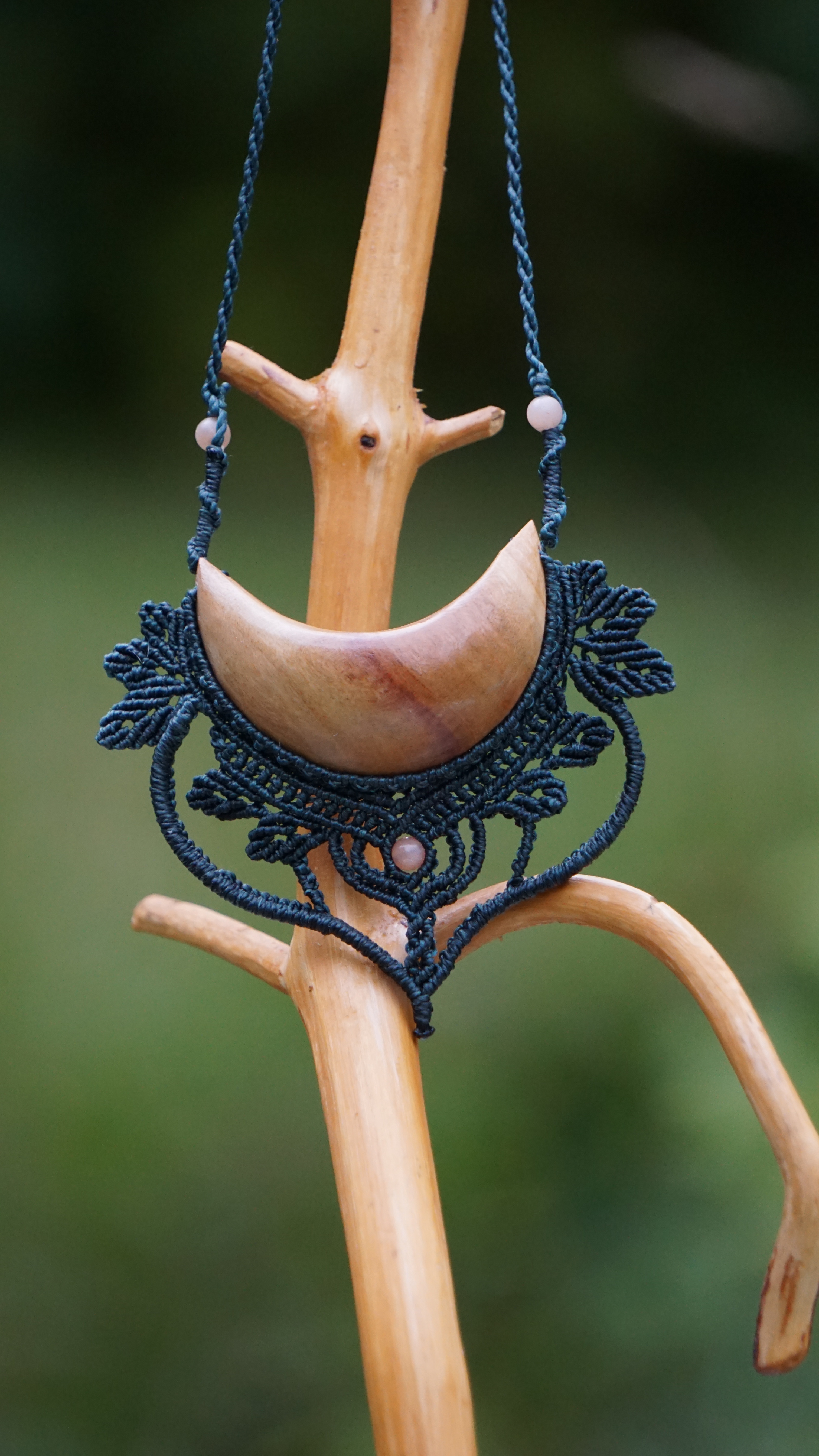 Šperk vznikl technikou micro macramé, což uzlíkování pouze za pomoci šikovných prstů a fantasie. Používám brazilské povoskované nitky, které jsou jedny z nejkvalitnějších na světě pro svou pevnost a stálobarevnost. Barva nitek je temně zelená. Síla nitek (spíš tenkost) je 0,5 mm (extra jemňoučká a precizní práce).