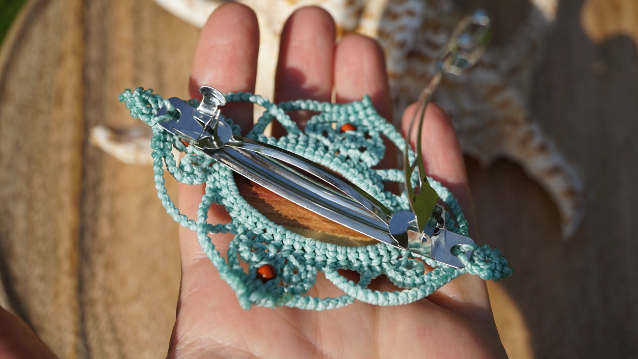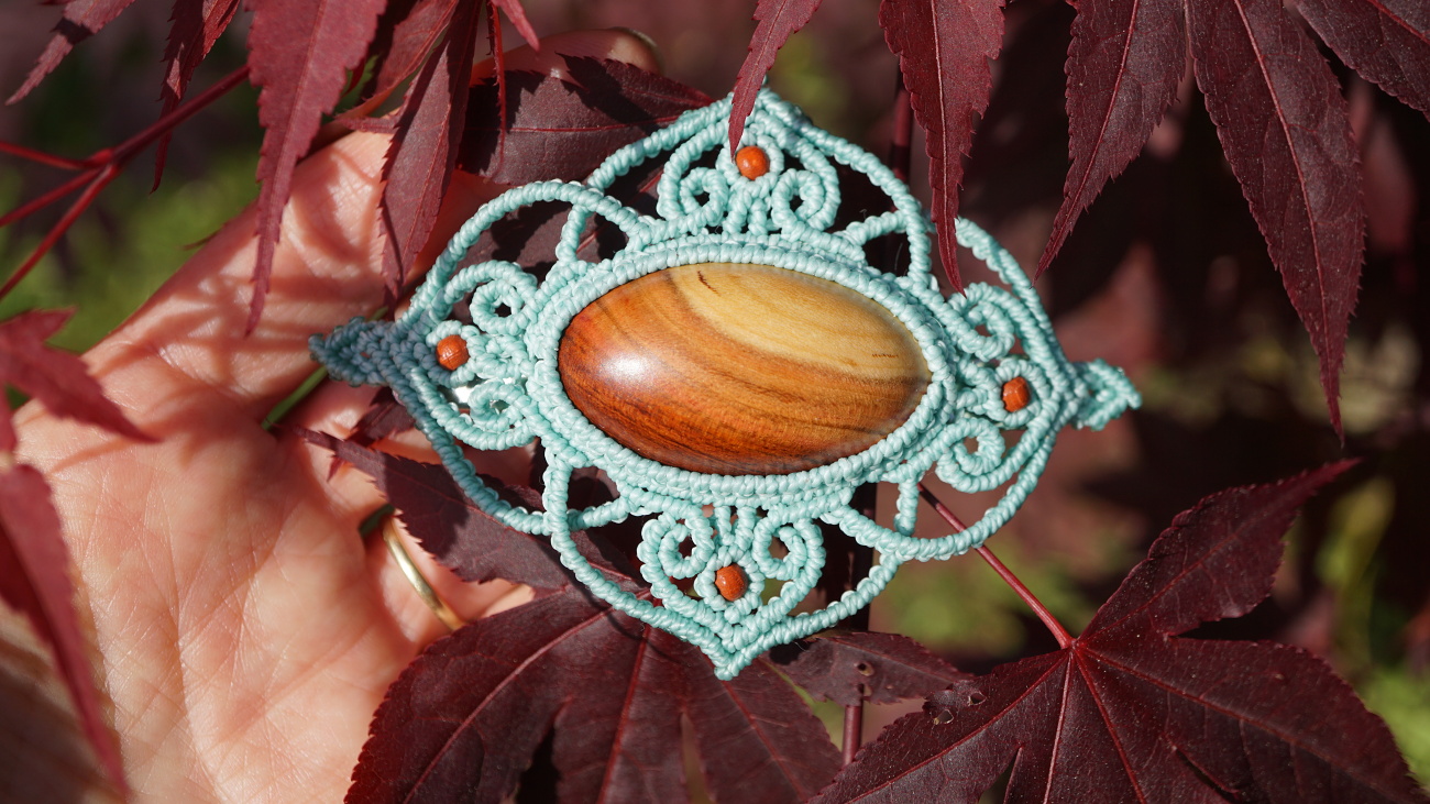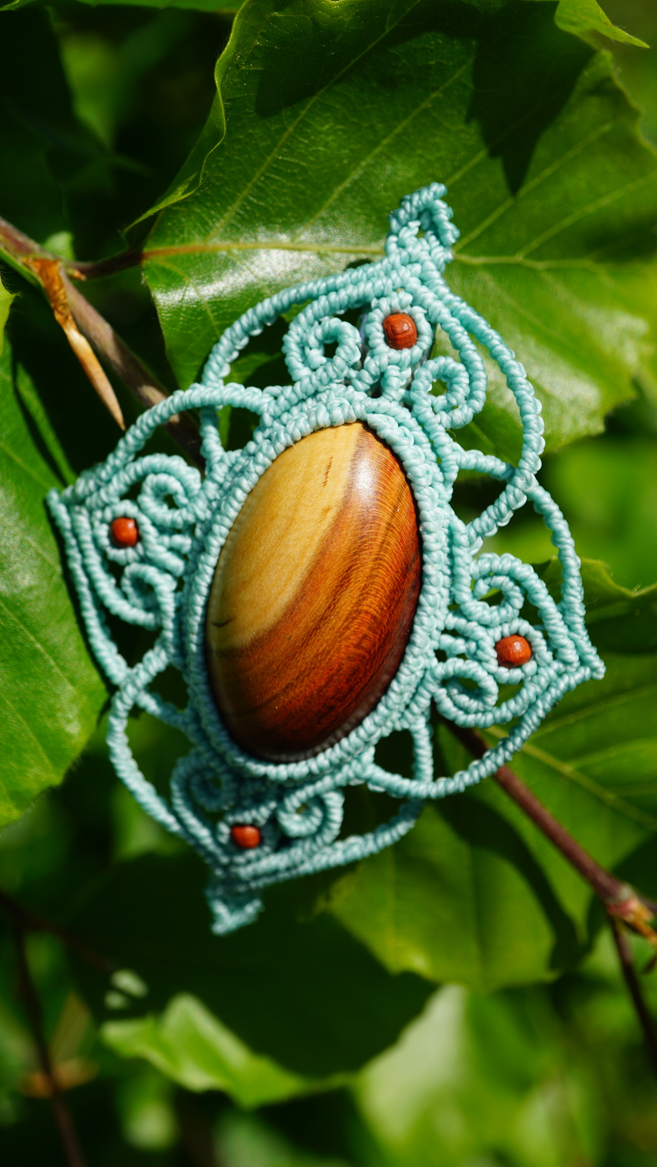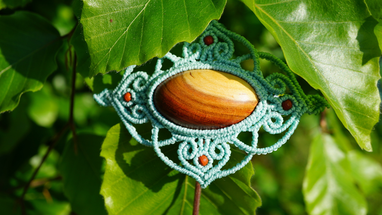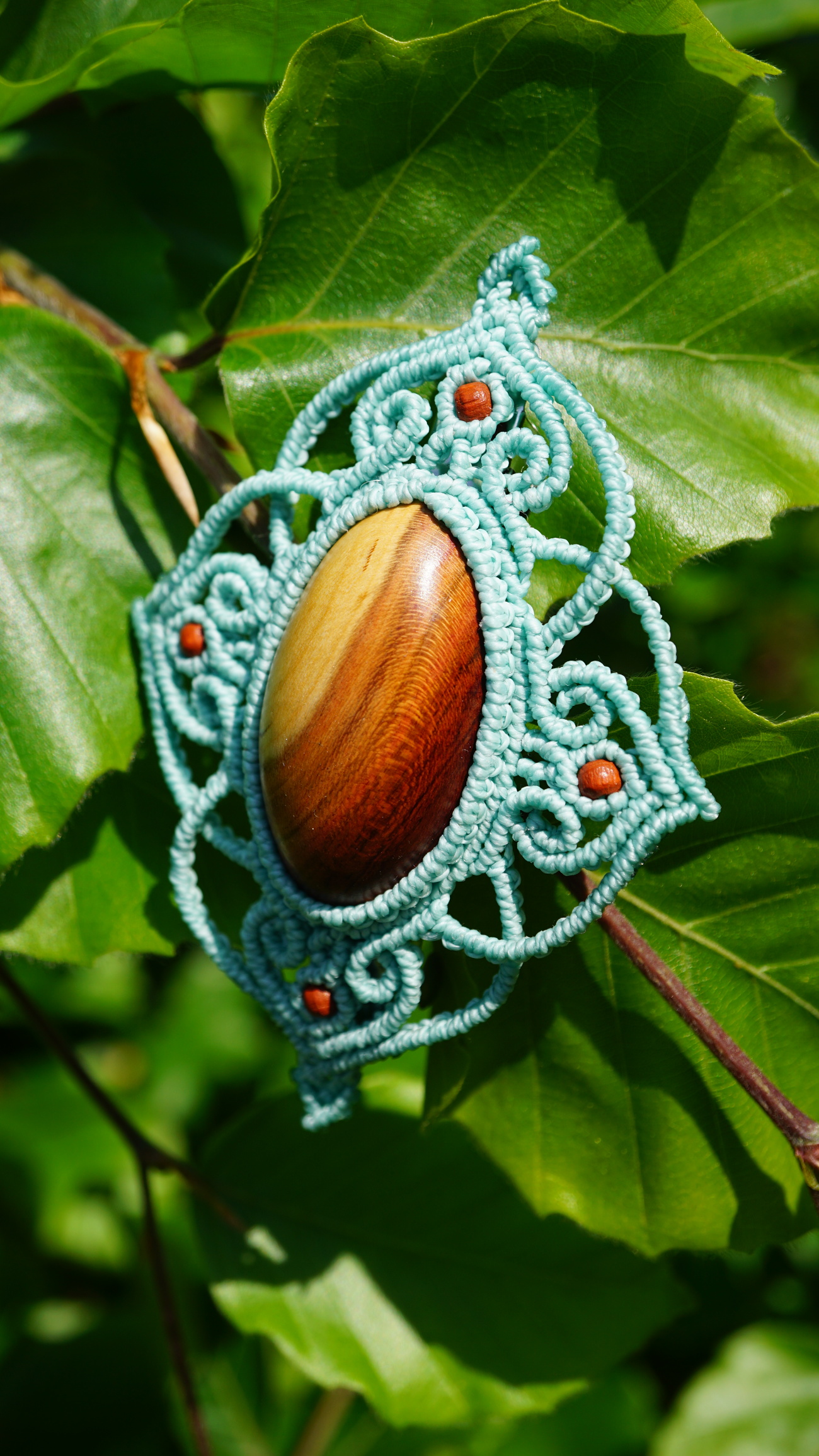 Šperk vznikl technikou micro macramé, což uzlíkování pouze za pomoci šikovných prstů a fantasie. Používám brazilské povoskované šňůrky, které jsou jedny z nejkvalitnějších na světě pro svou pevnost a stálobarevnost.