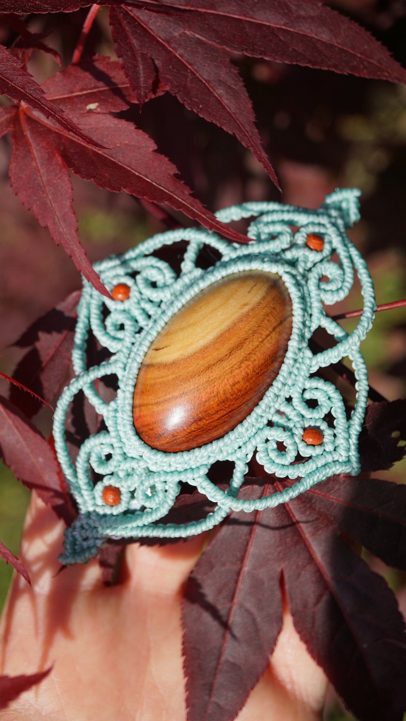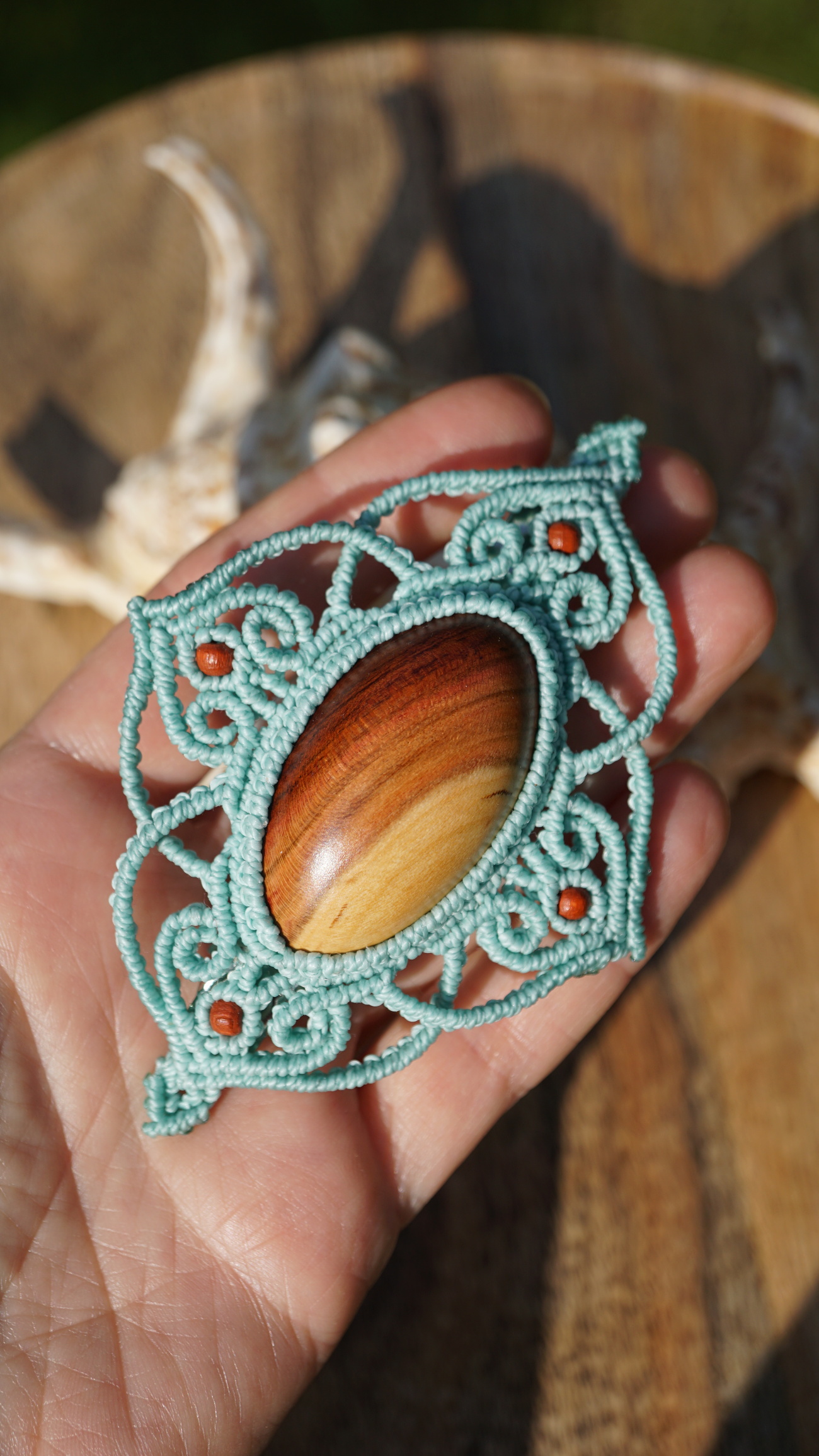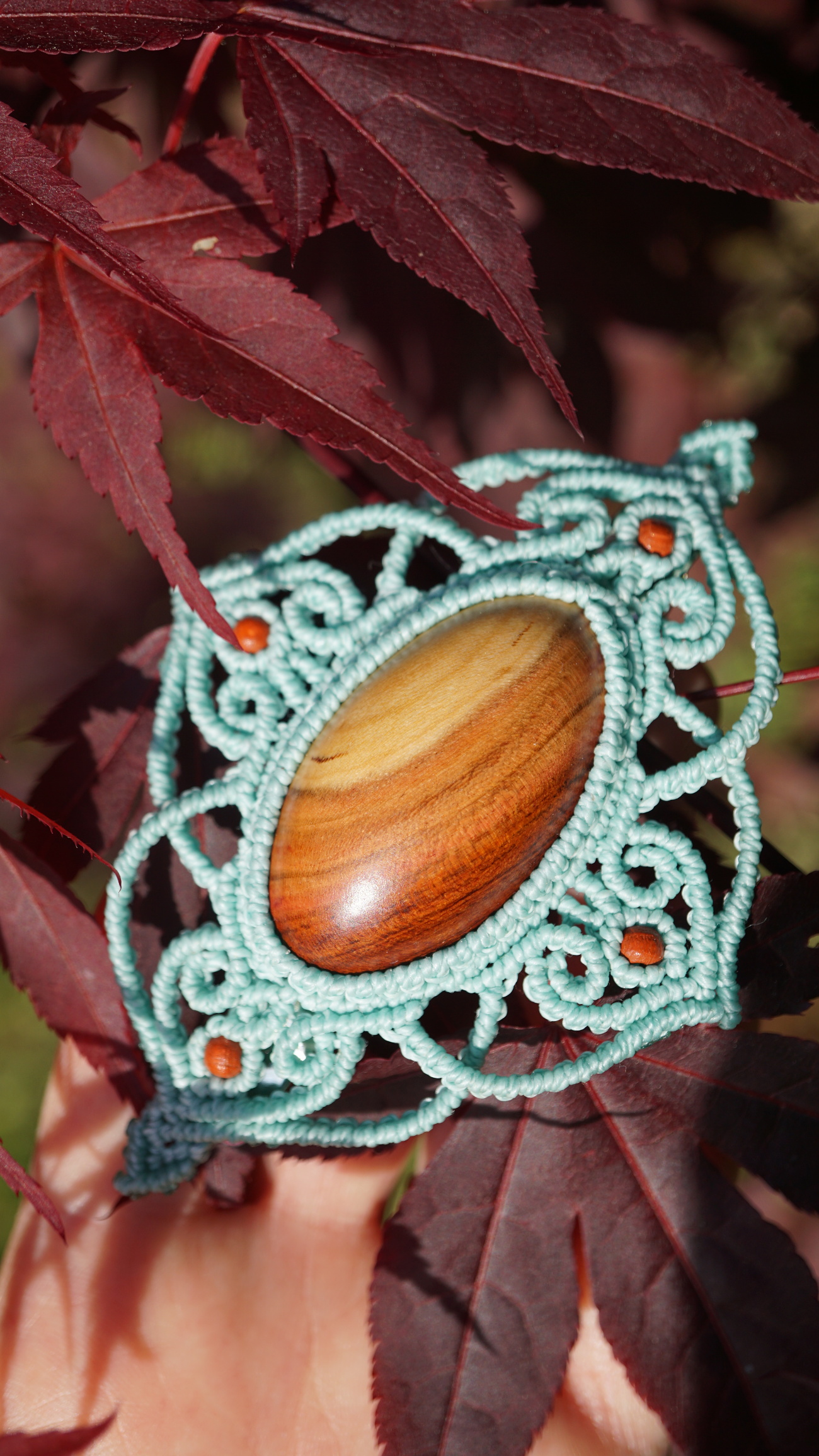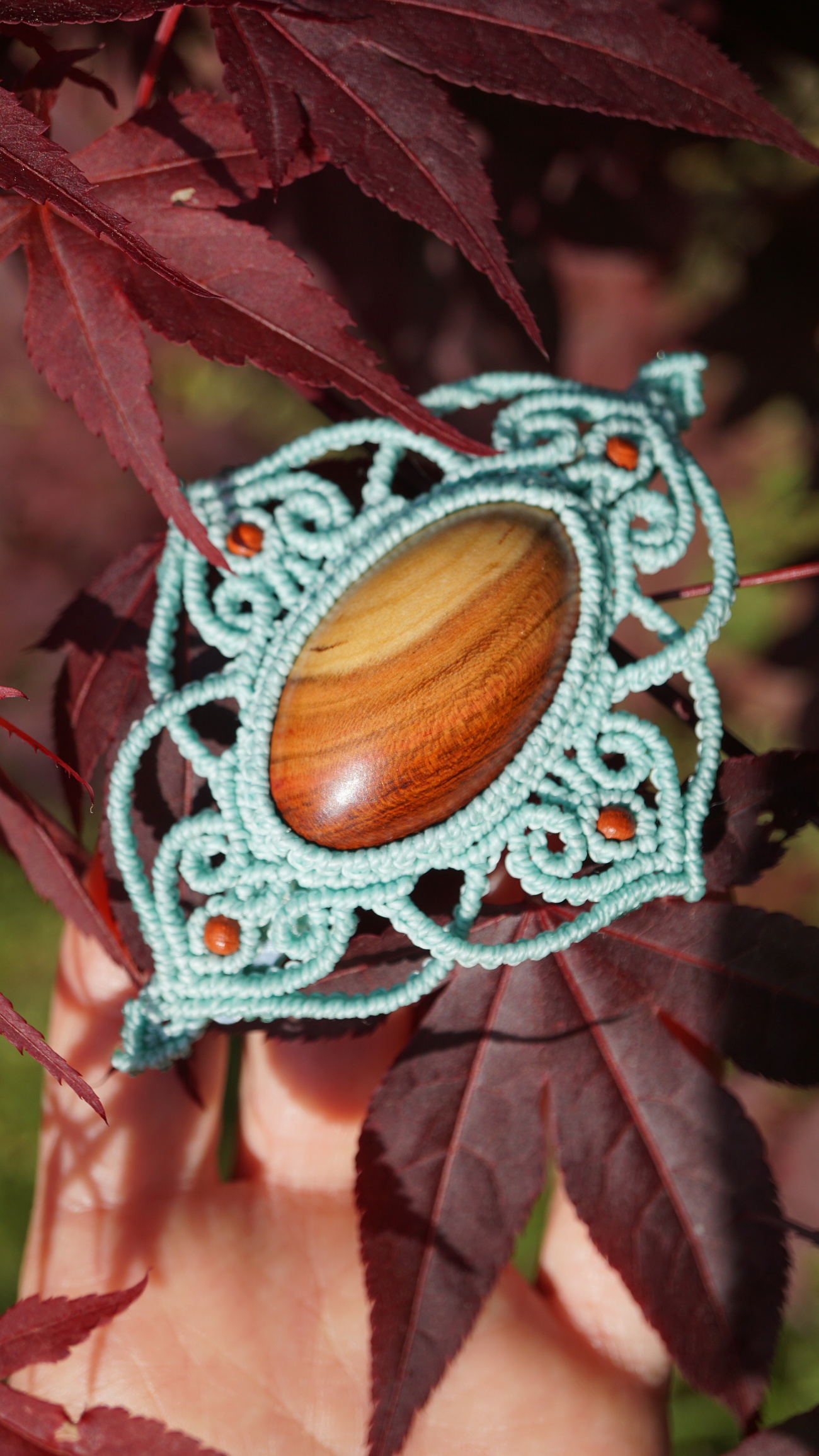 Šperk vznikl technikou micro macramé, což uzlíkování pouze za pomoci šikovných prstů a fantasie. Používám brazilské povoskované šňůrky, které jsou jedny z nejkvalitnějších na světě pro svou pevnost a stálobarevnost.